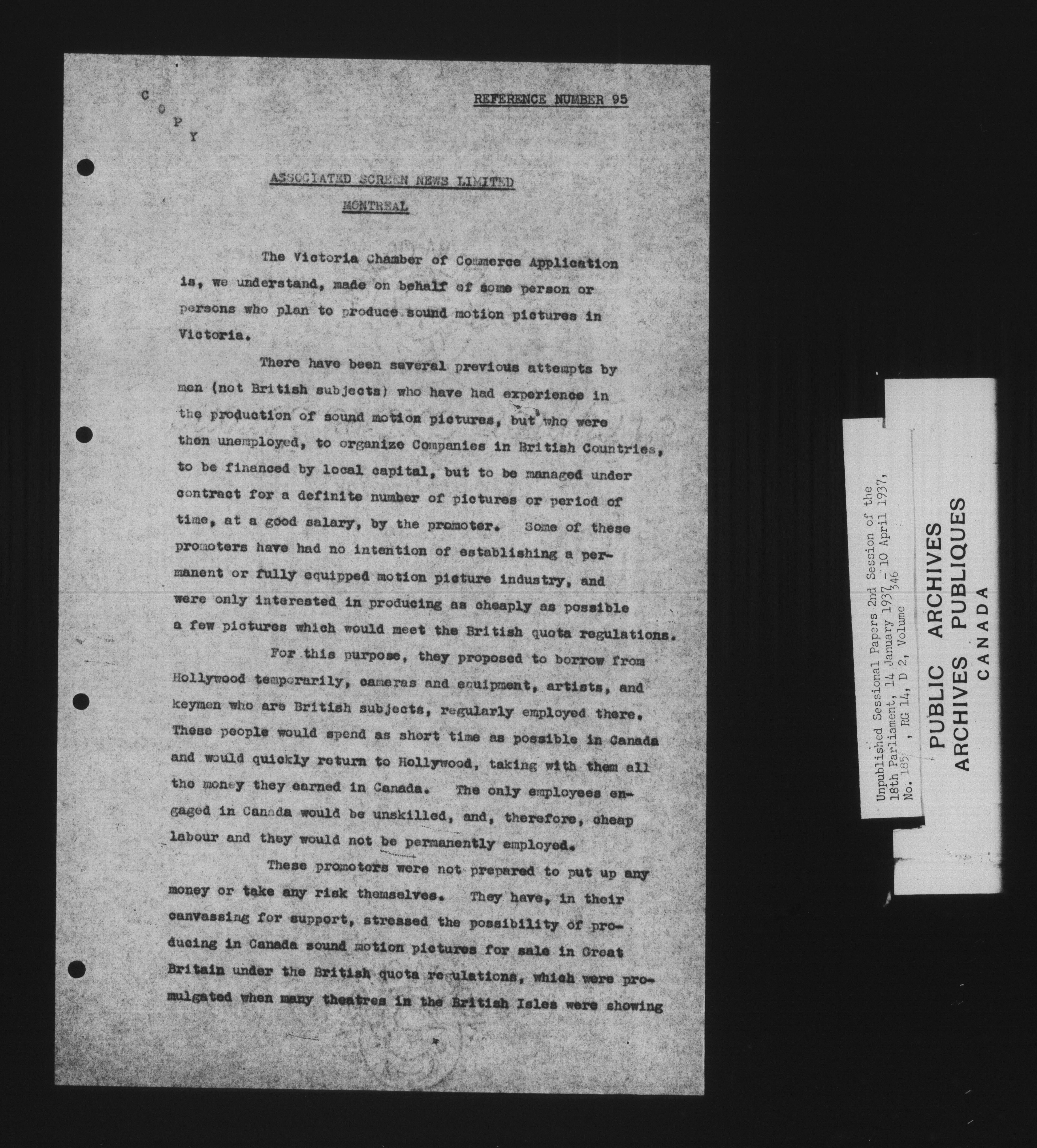 Unpublished sessional papers, 2nd Session, 18th Parliament - 7879