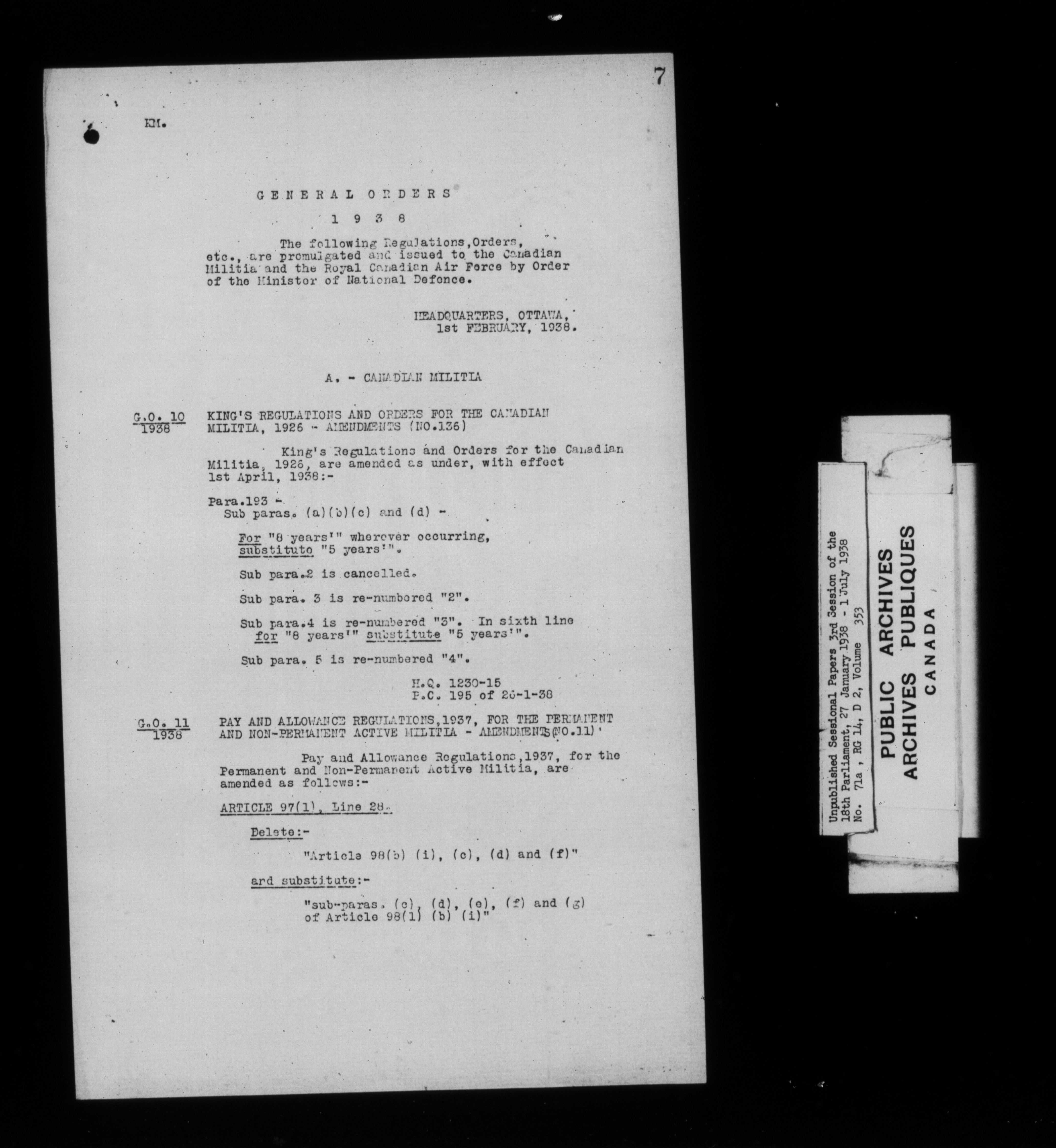 Unpublished sessional papers, 3rd Session, 18th Parliament - 7882