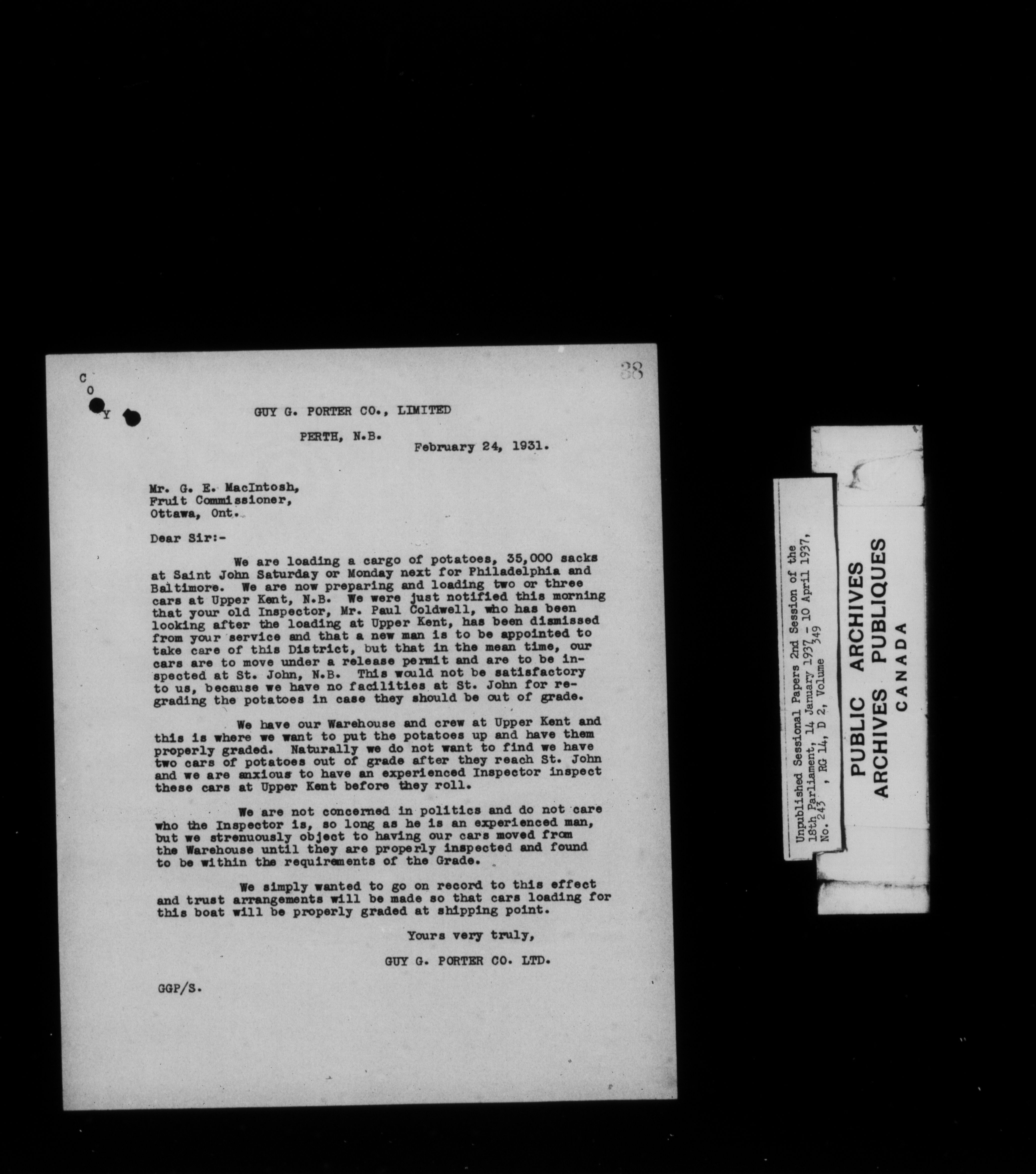 Unpublished sessional papers, 3rd Session, 18th Parliament - 7882