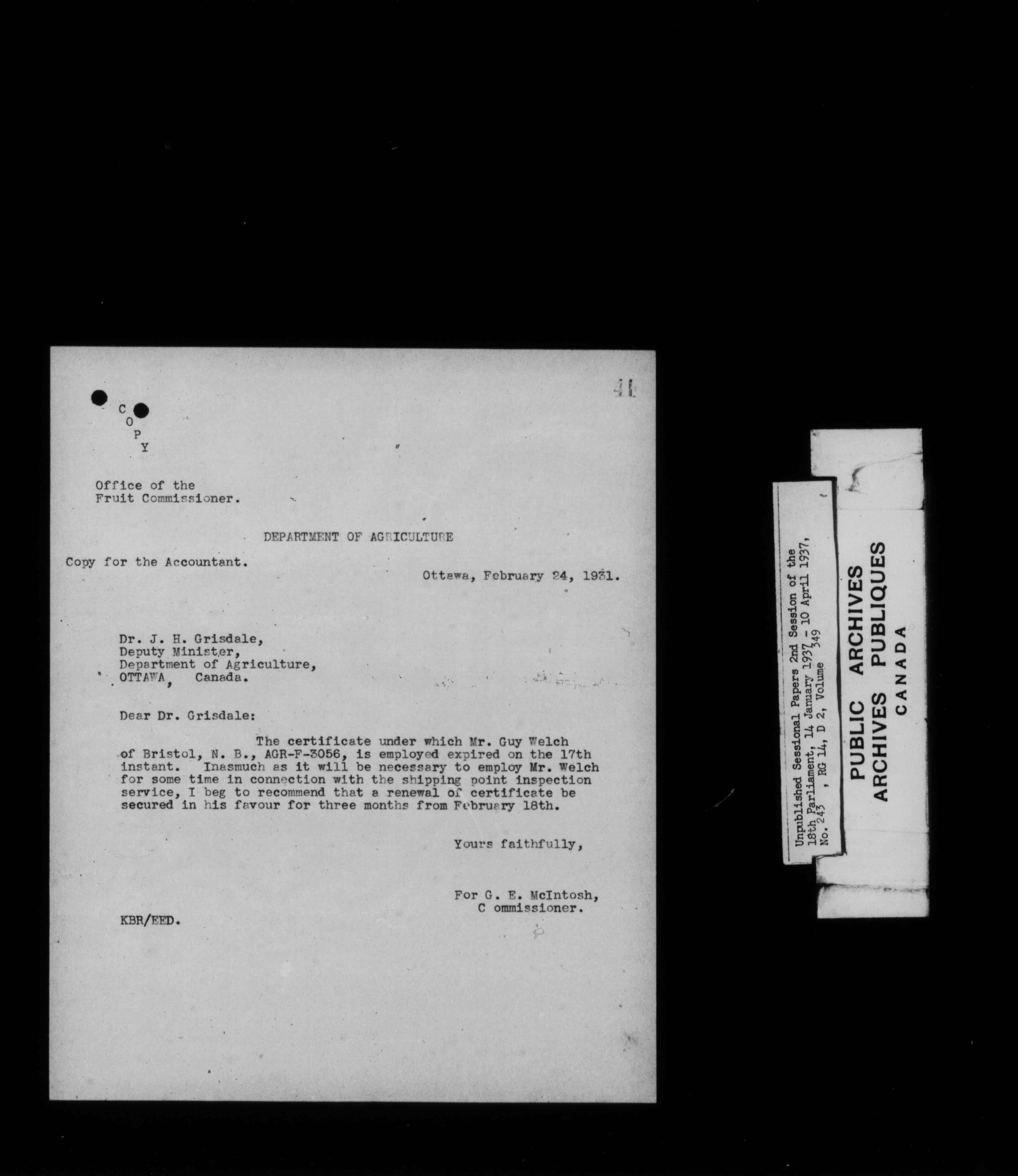 Unpublished sessional papers, 3rd Session, 18th Parliament - 7882