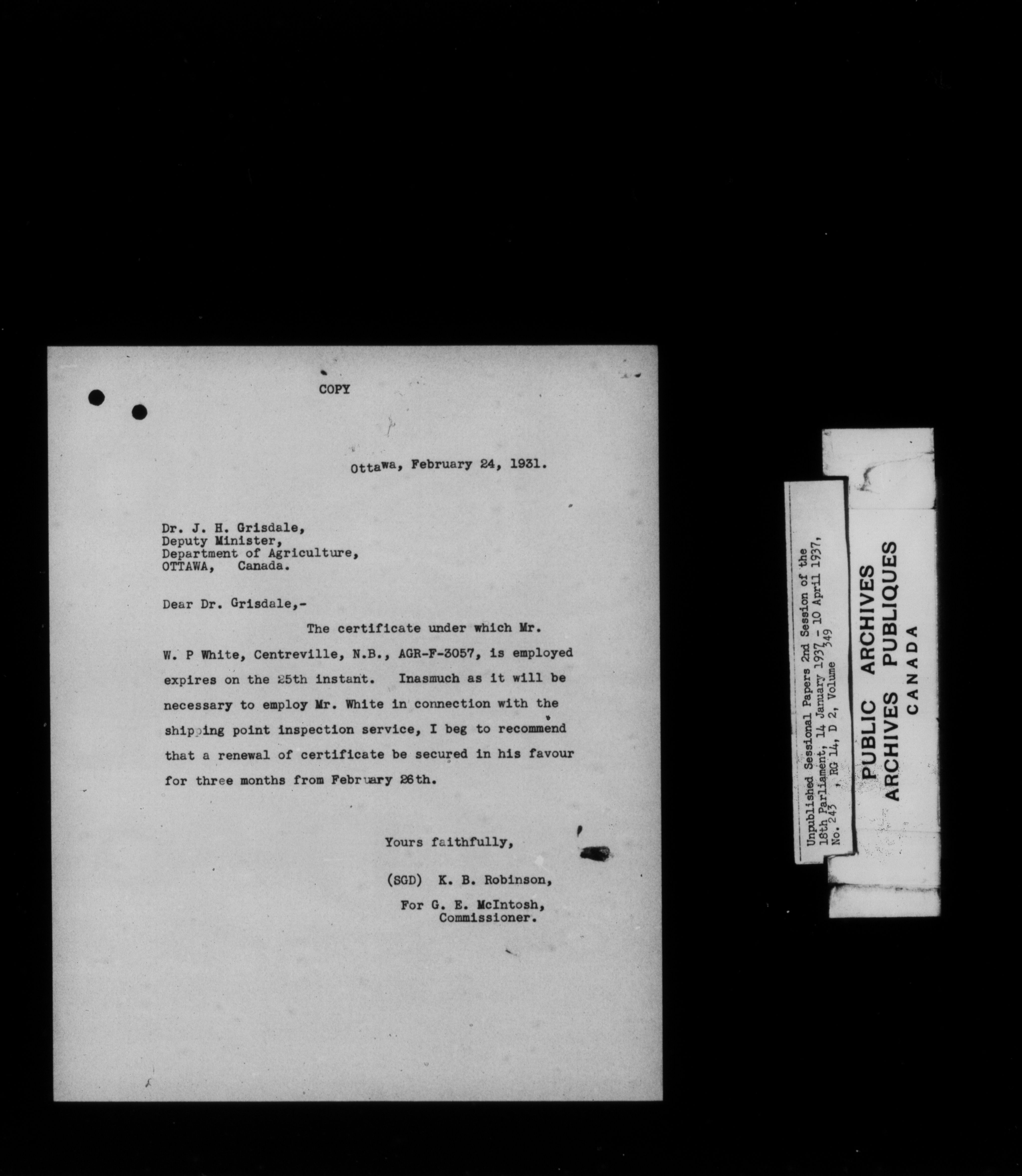 Unpublished sessional papers, 3rd Session, 18th Parliament - 7882