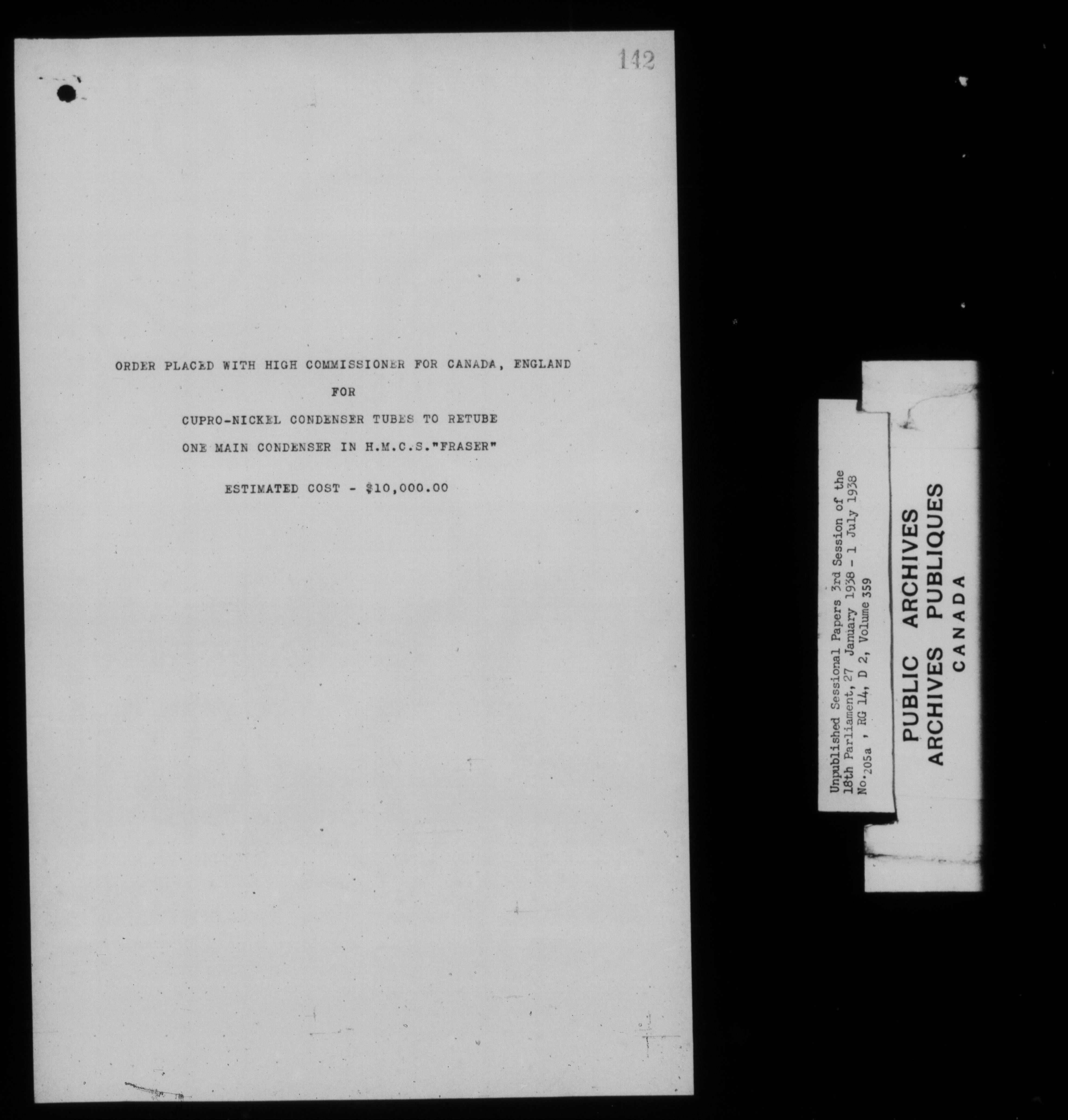 Unpublished sessional papers, 3rd Session, 18th Parliament - 7885