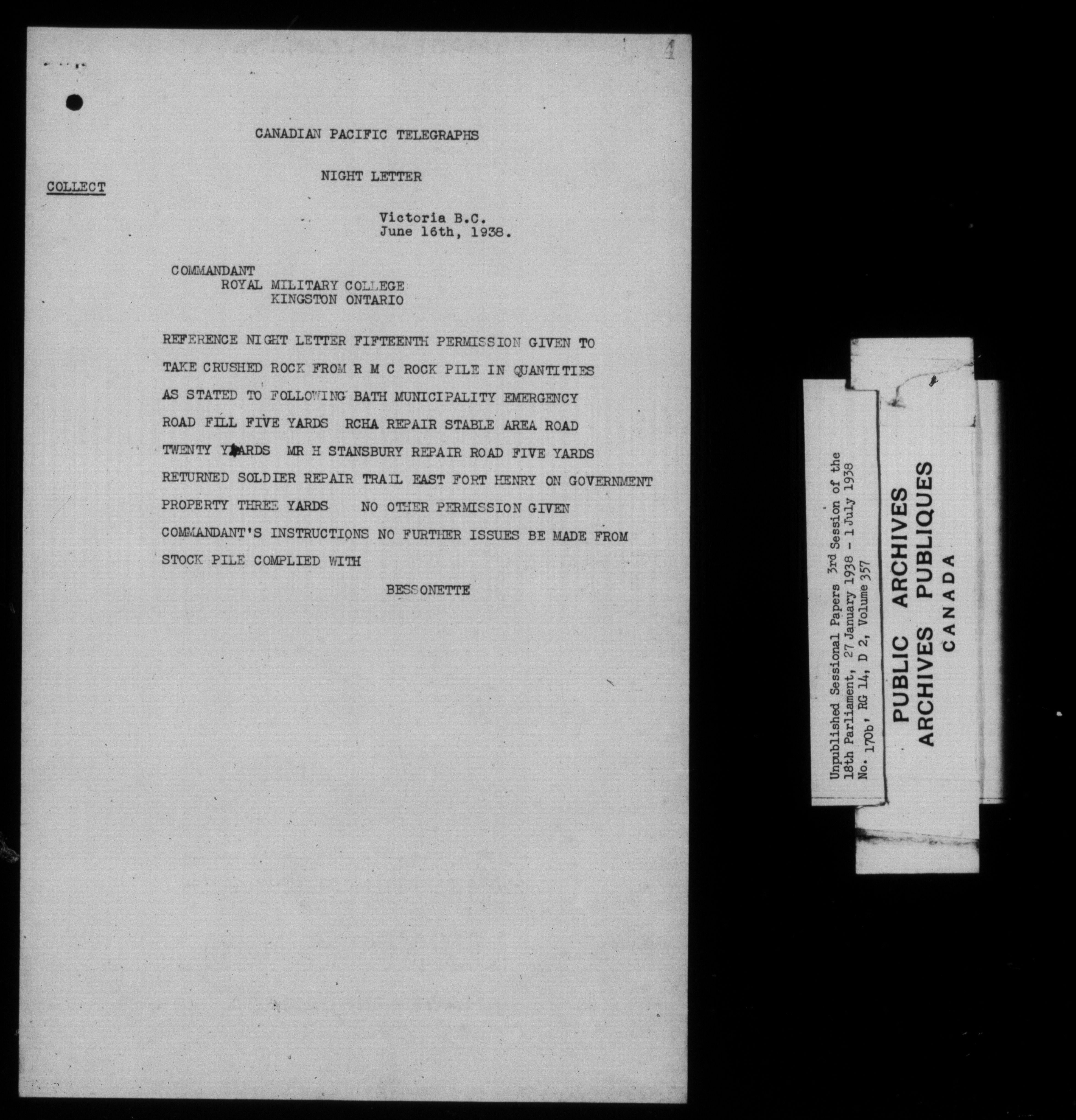 Unpublished sessional papers, 3rd Session, 18th Parliament - 7885