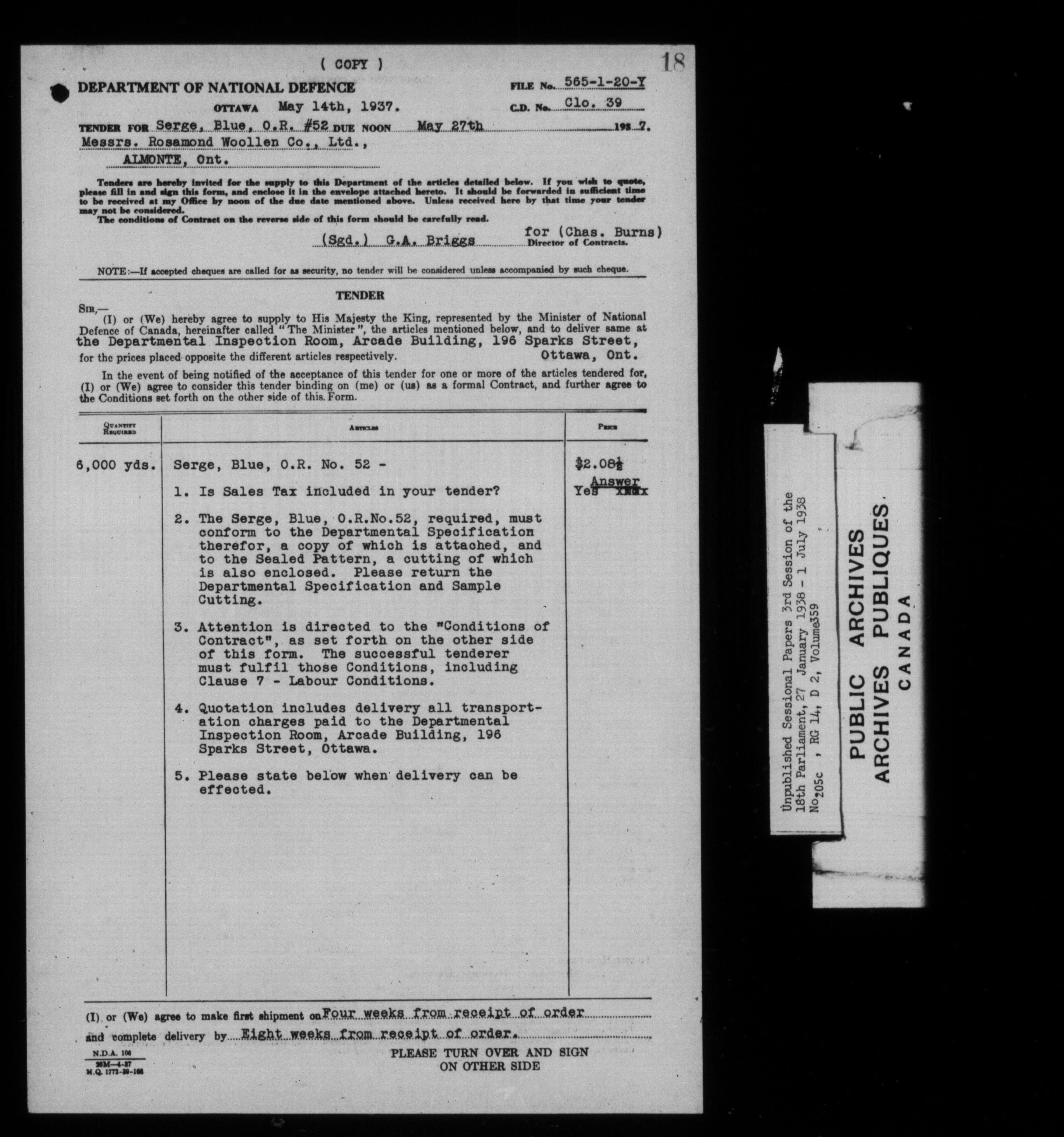 Unpublished sessional papers, 3rd Session, 18th Parliament - 7886