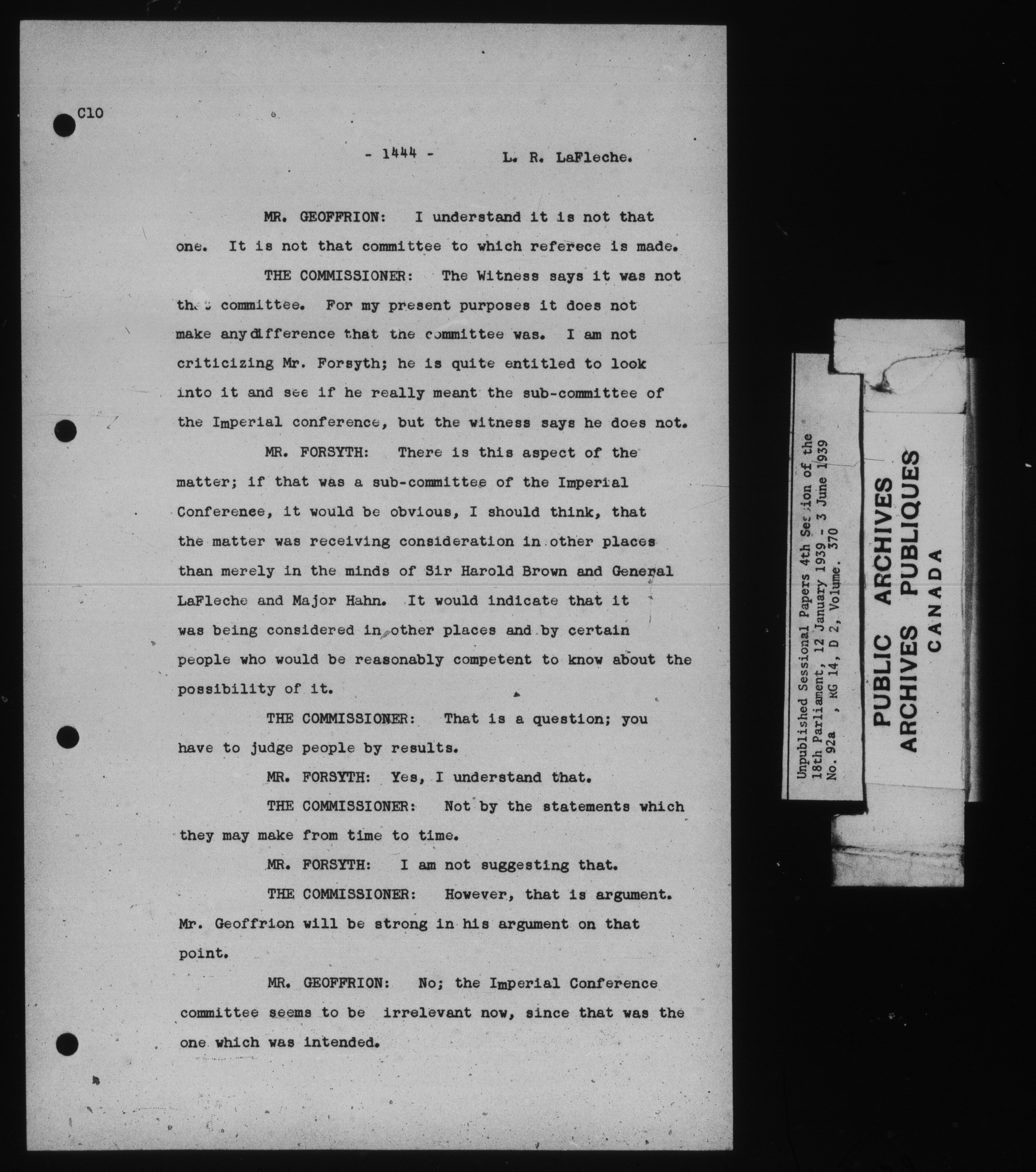 Unpublished Sessional Papers, 4th Session of the 18th Parliament, 12 January 1939- 3 June 1939, No. 92a - 7893