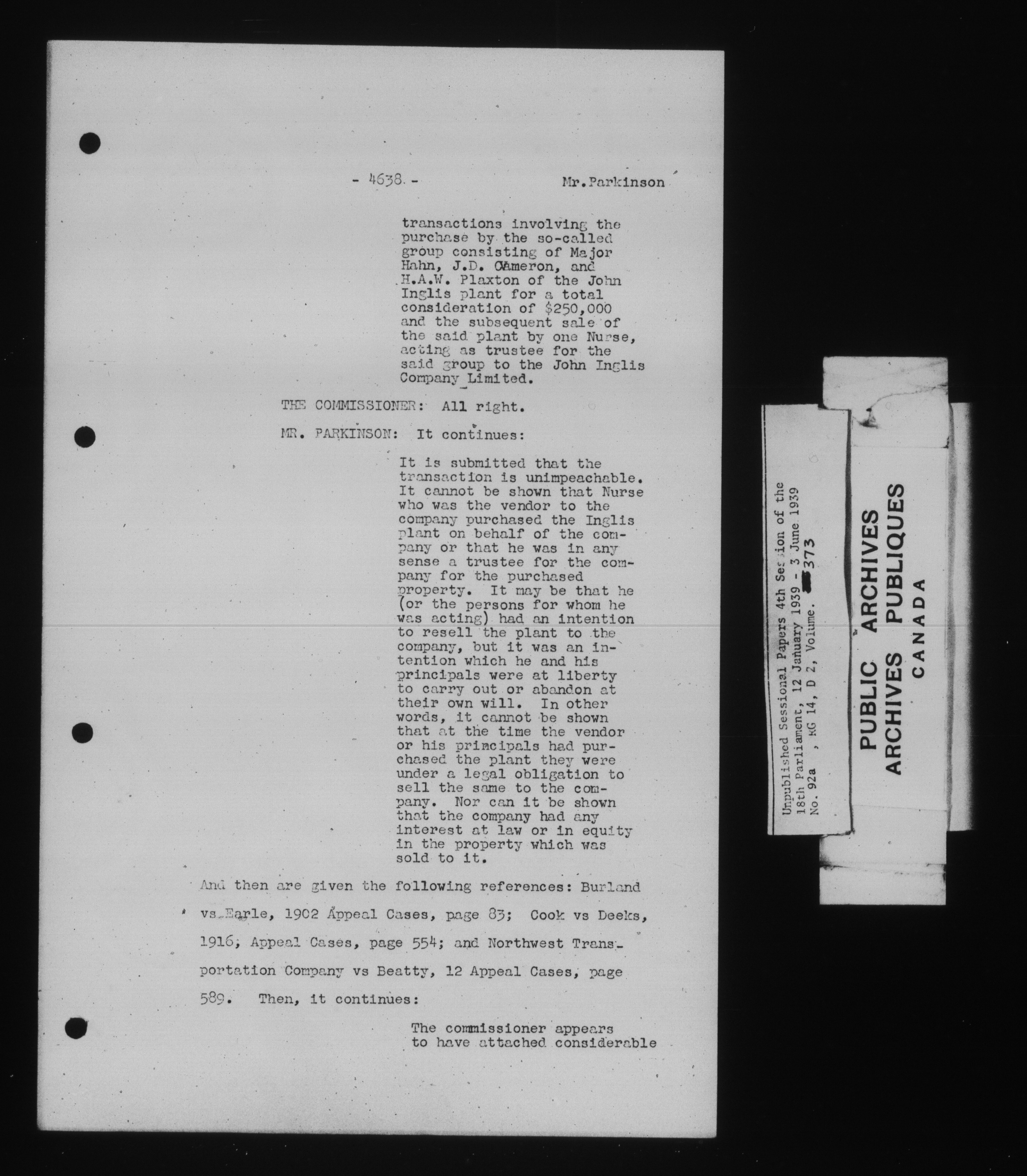 Unpublished sessional papers, 4th Session, 18th Parliament - 7894