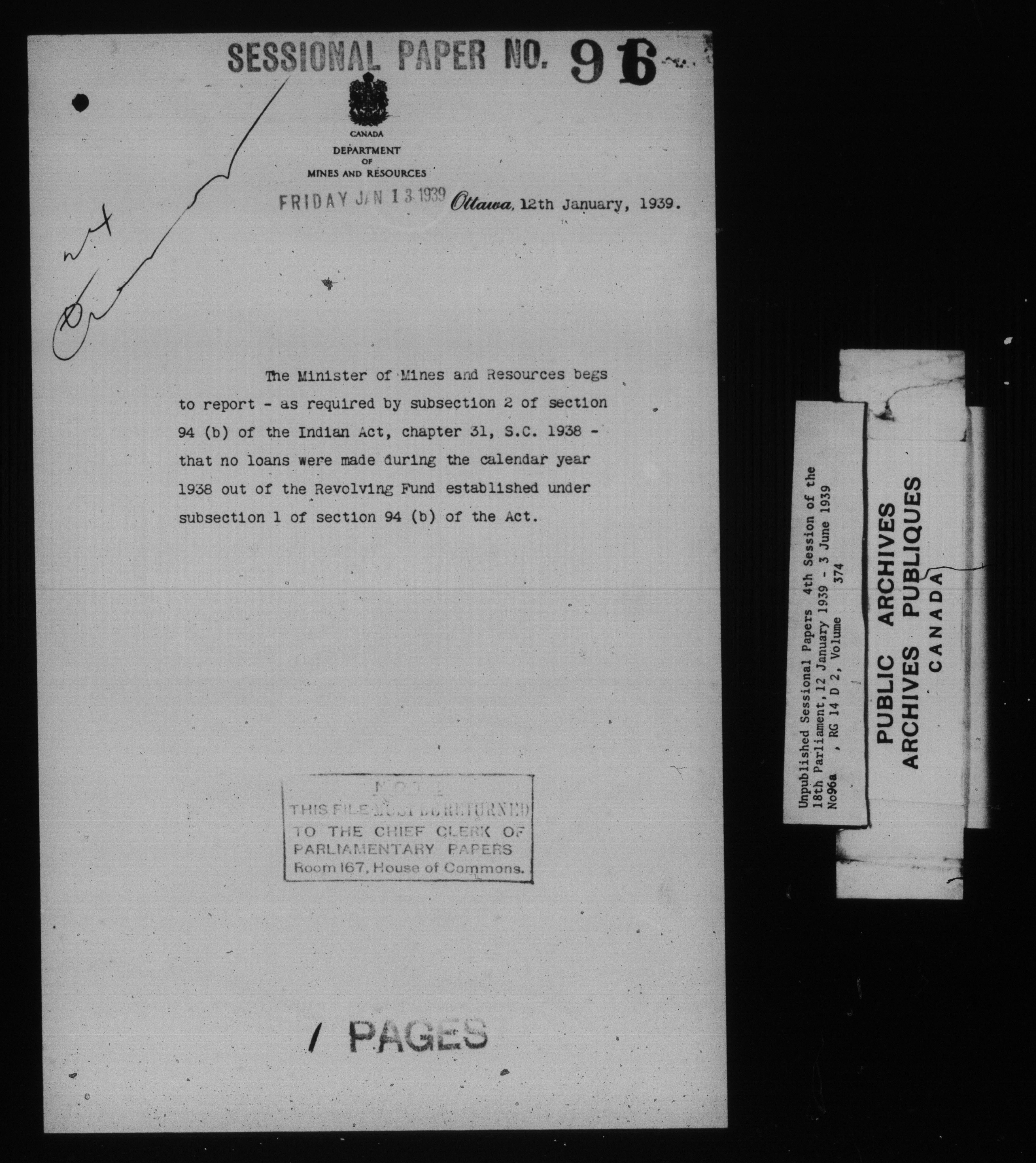 Unpublished sessional papers, 4th Session, 18th Parliament - 7895