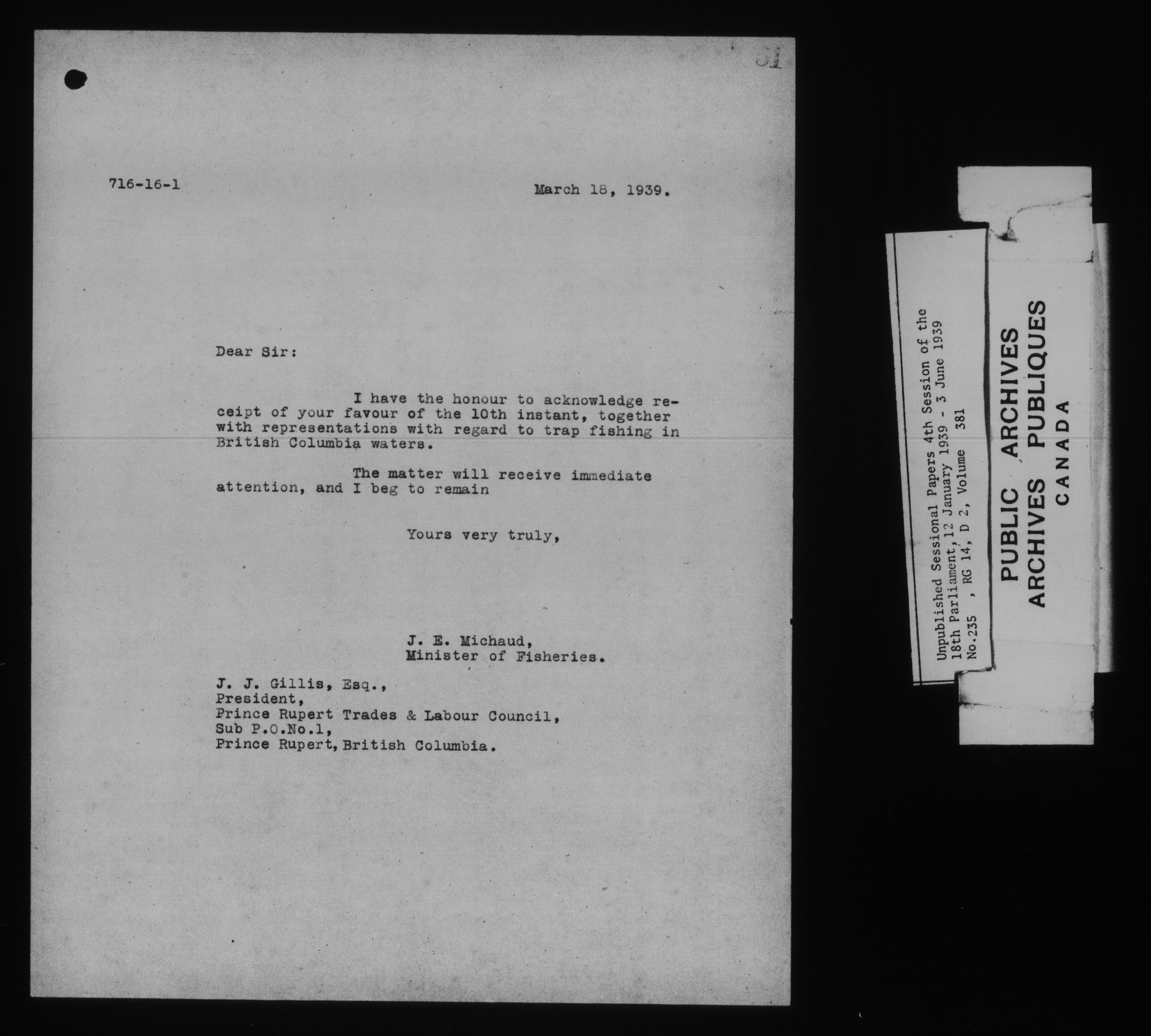 Unpublished sessional papers, 4th Session, 18th Parliament - 7899