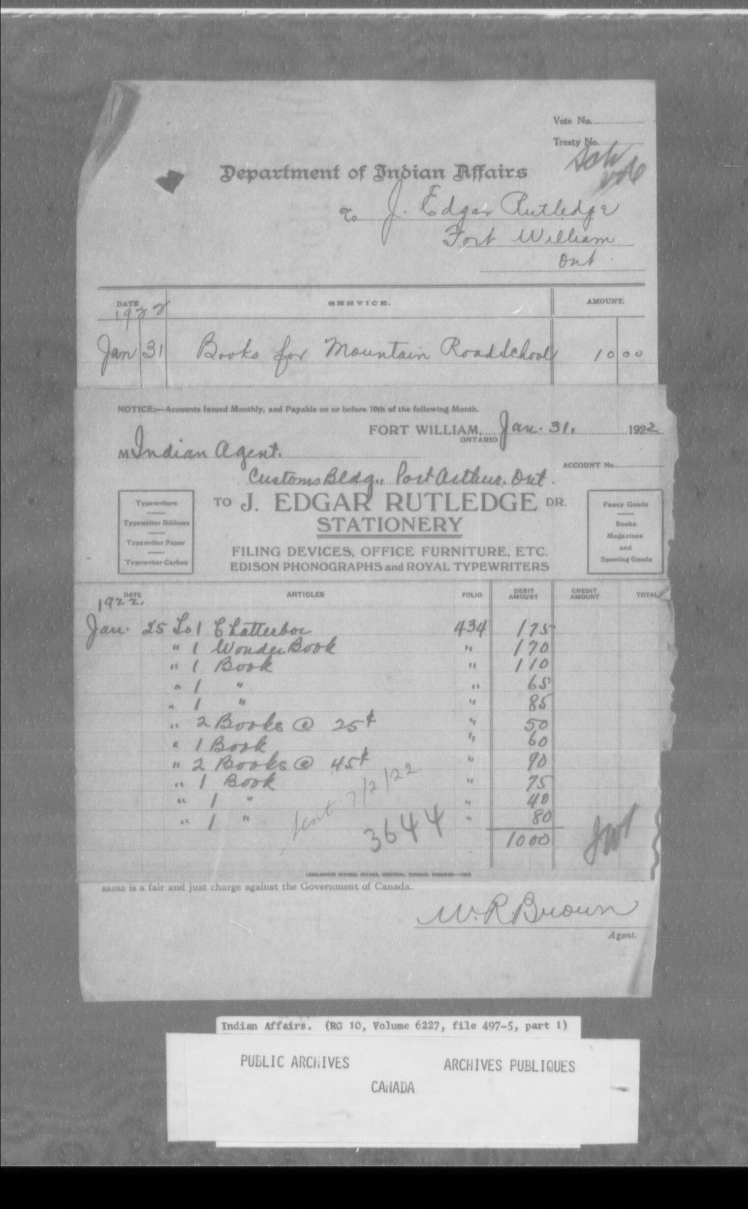 Port Arthur Agency -- (Fort William) -- Mountain Village School (Mission Bay)