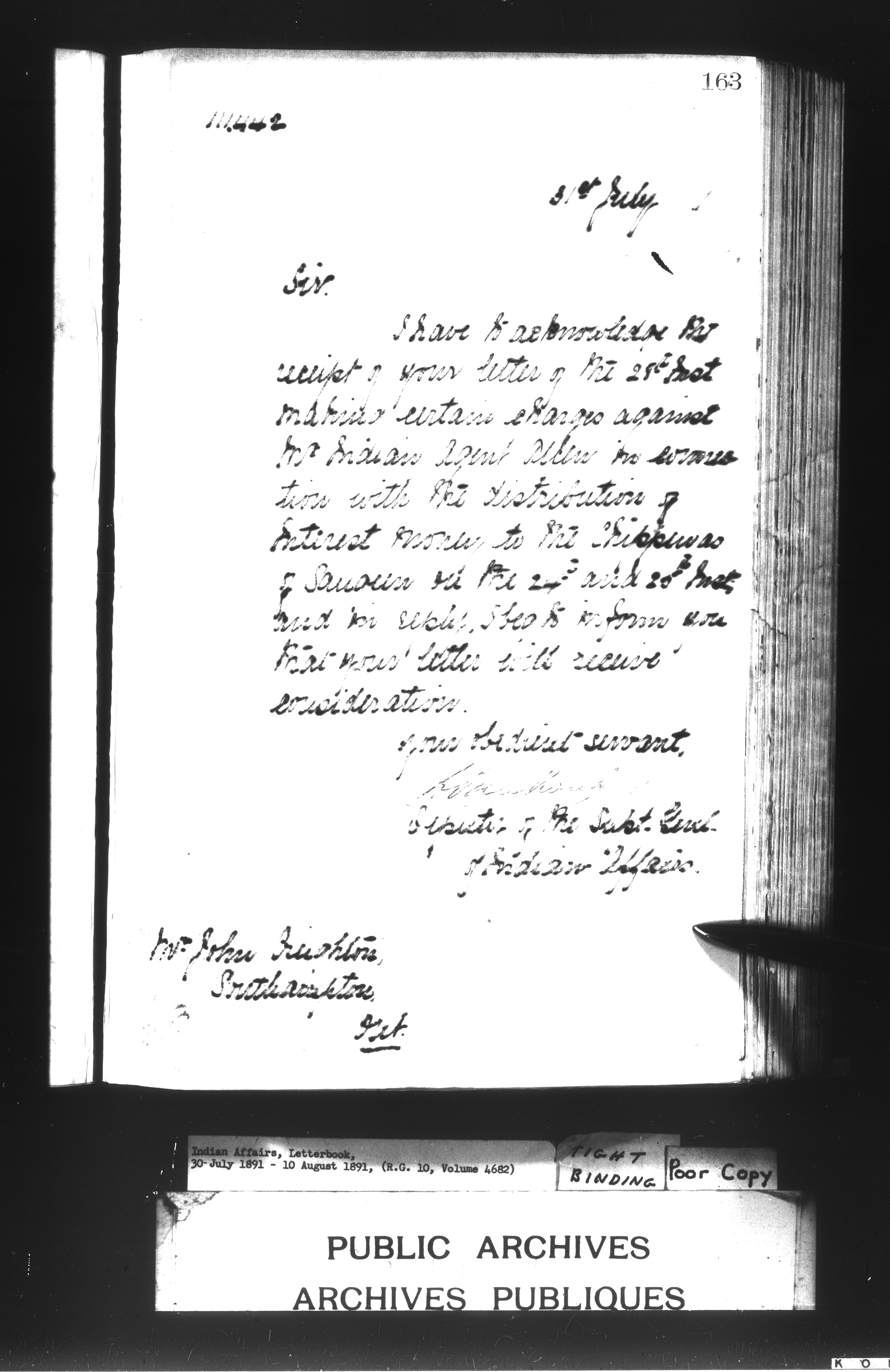 Department of Indian Affairs : Letterbooks of out-going correspondence relating to the administration of Indian Affairs in both eastern and western Canada, 1871-1920 - 7964
