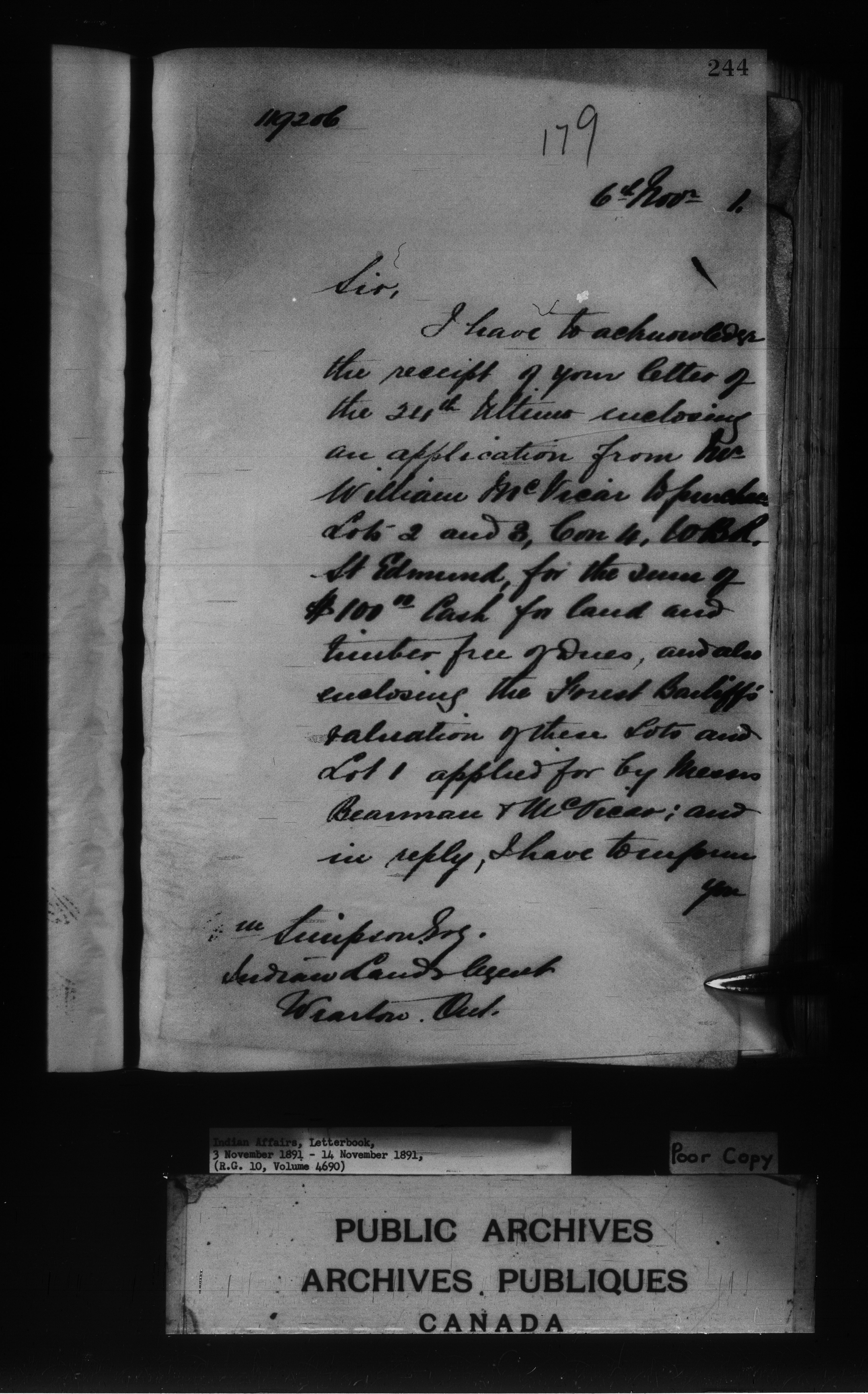 Department of Indian Affairs : Letterbooks of out-going correspondence relating to the administration of Indian Affairs in both eastern and western Canada, 1871-1920 - 7969