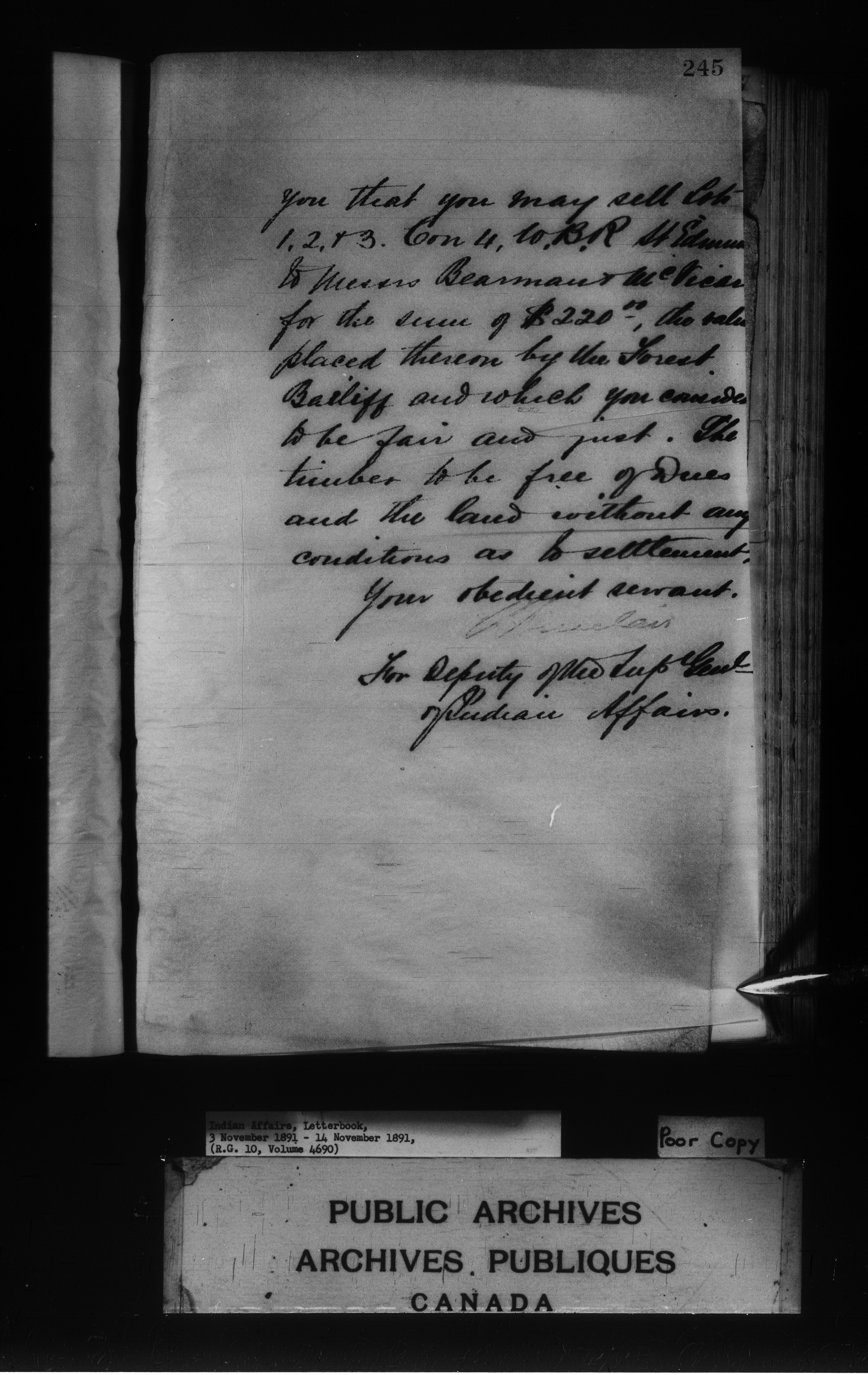 Department of Indian Affairs : Letterbooks of out-going correspondence relating to the administration of Indian Affairs in both eastern and western Canada, 1871-1920 - 7969
