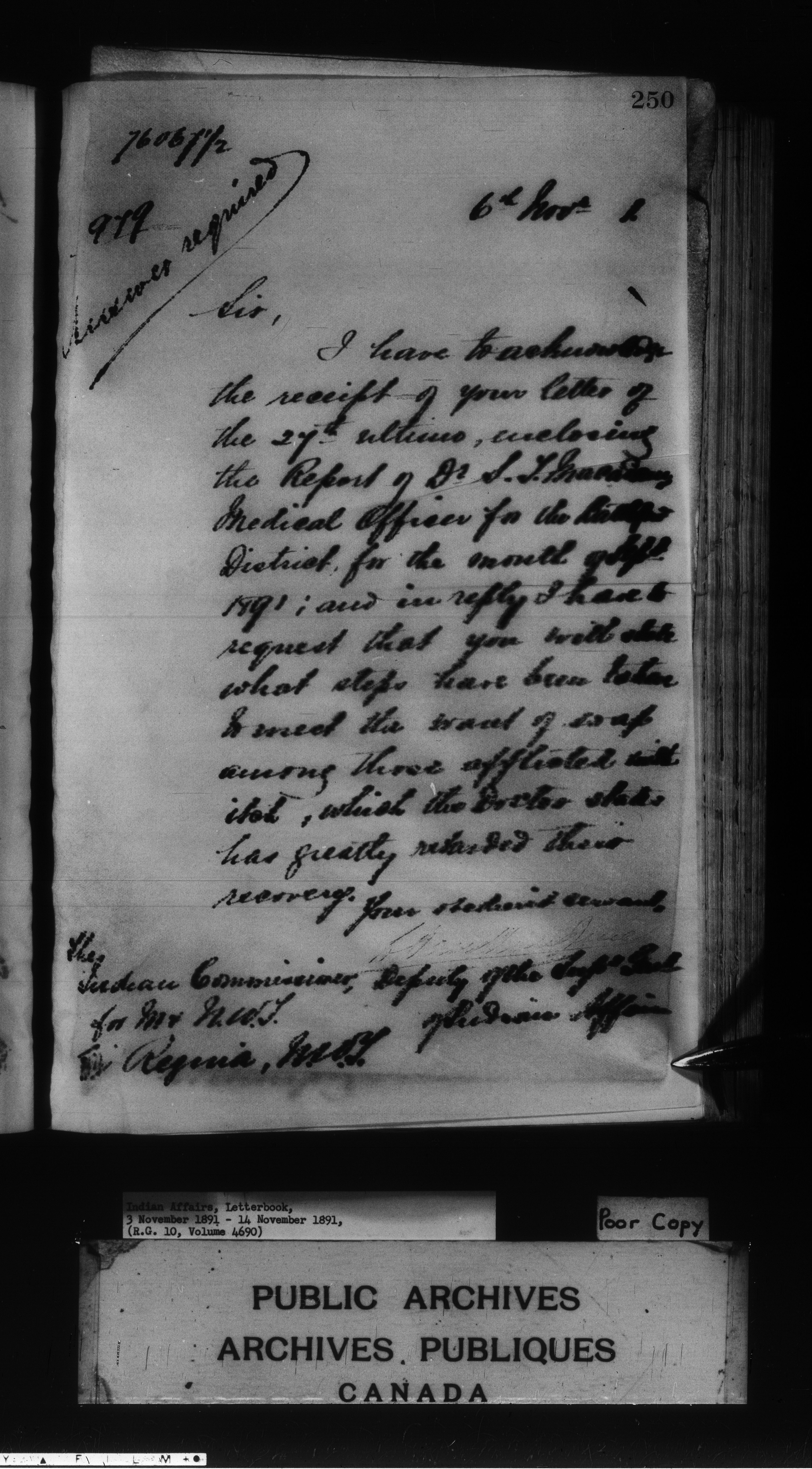 Department of Indian Affairs : Letterbooks of out-going correspondence relating to the administration of Indian Affairs in both eastern and western Canada, 1871-1920 - 7969