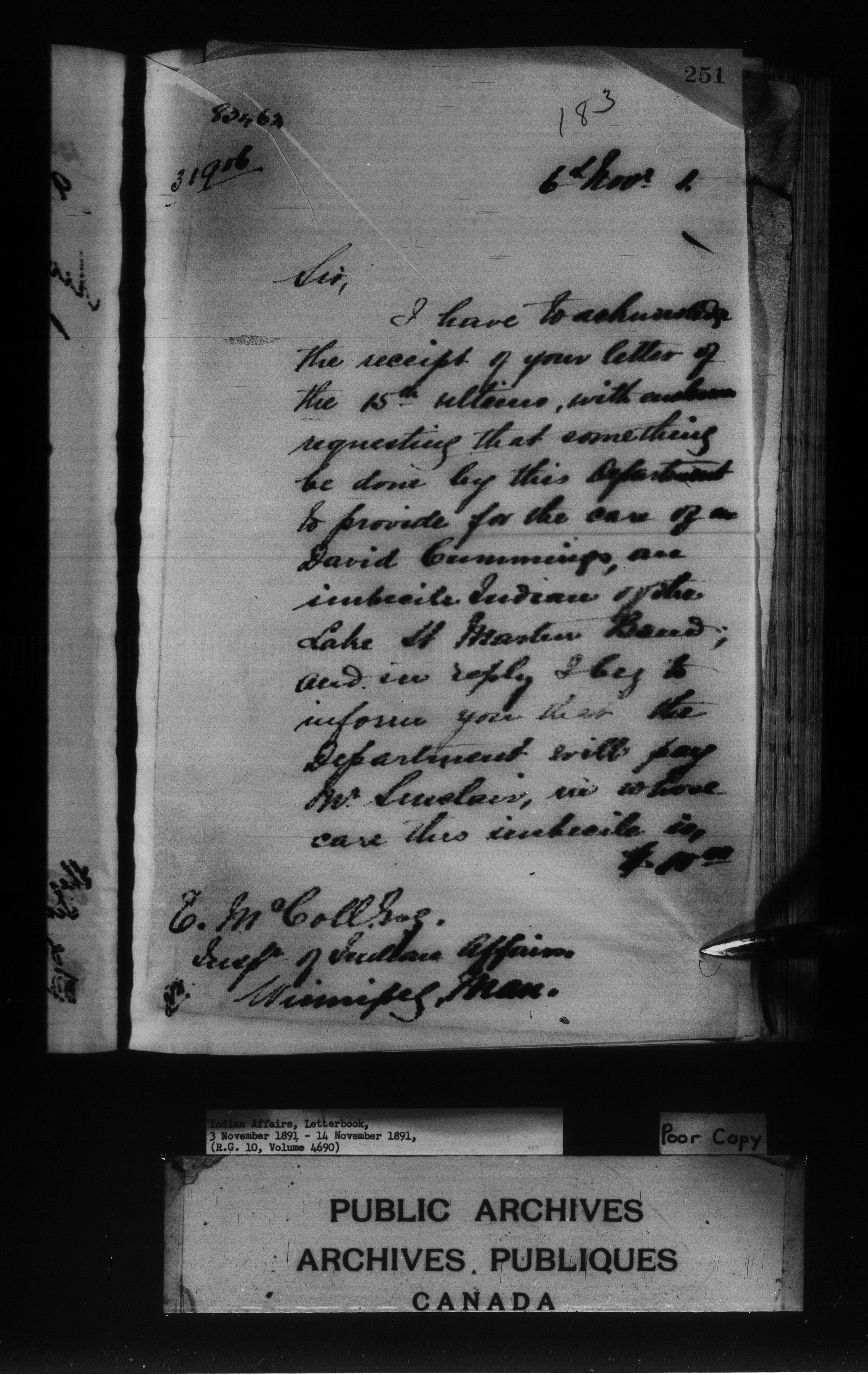 Department of Indian Affairs : Letterbooks of out-going correspondence relating to the administration of Indian Affairs in both eastern and western Canada, 1871-1920 - 7969