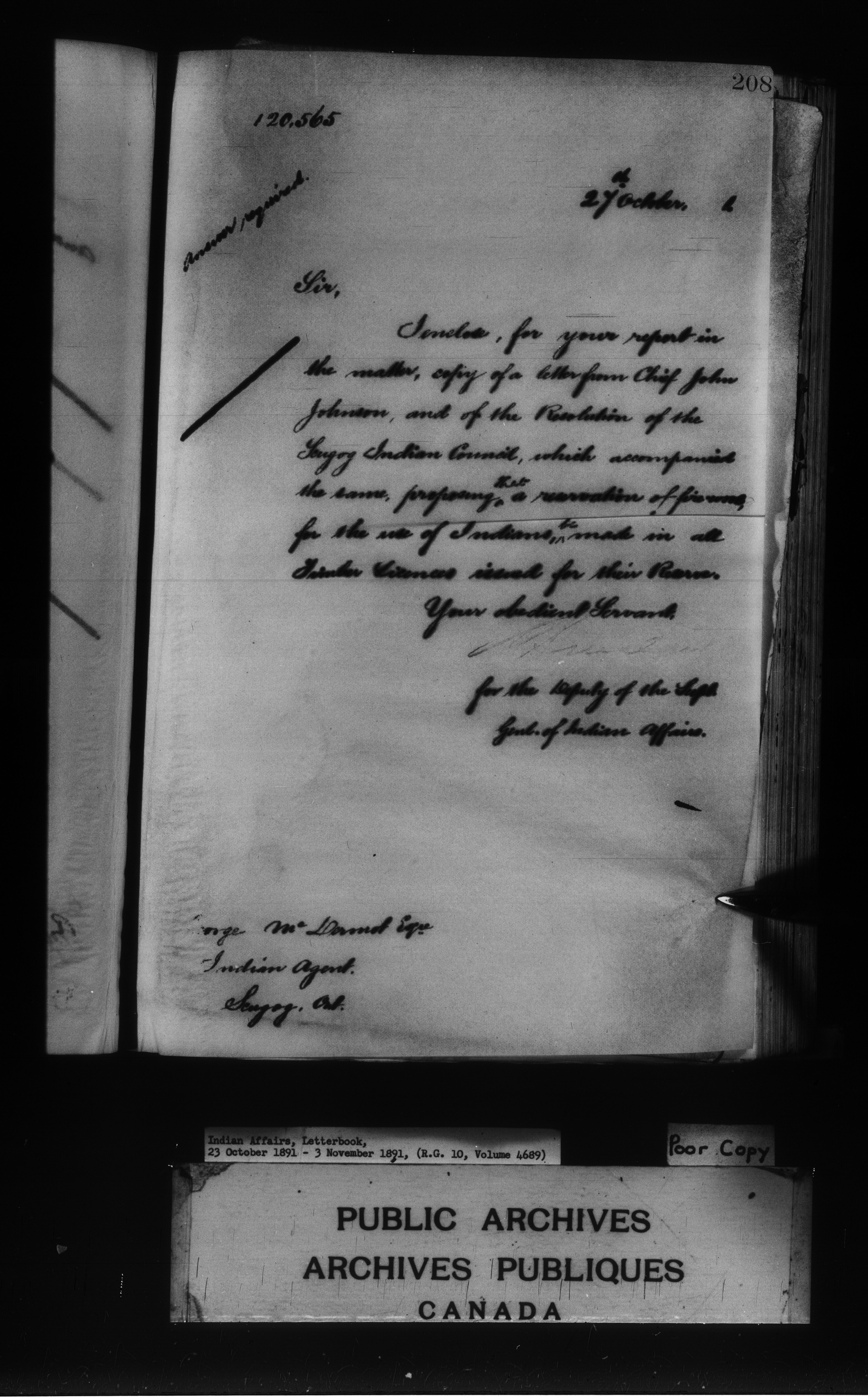 Department of Indian Affairs : Departmental letterbooks : C-7969