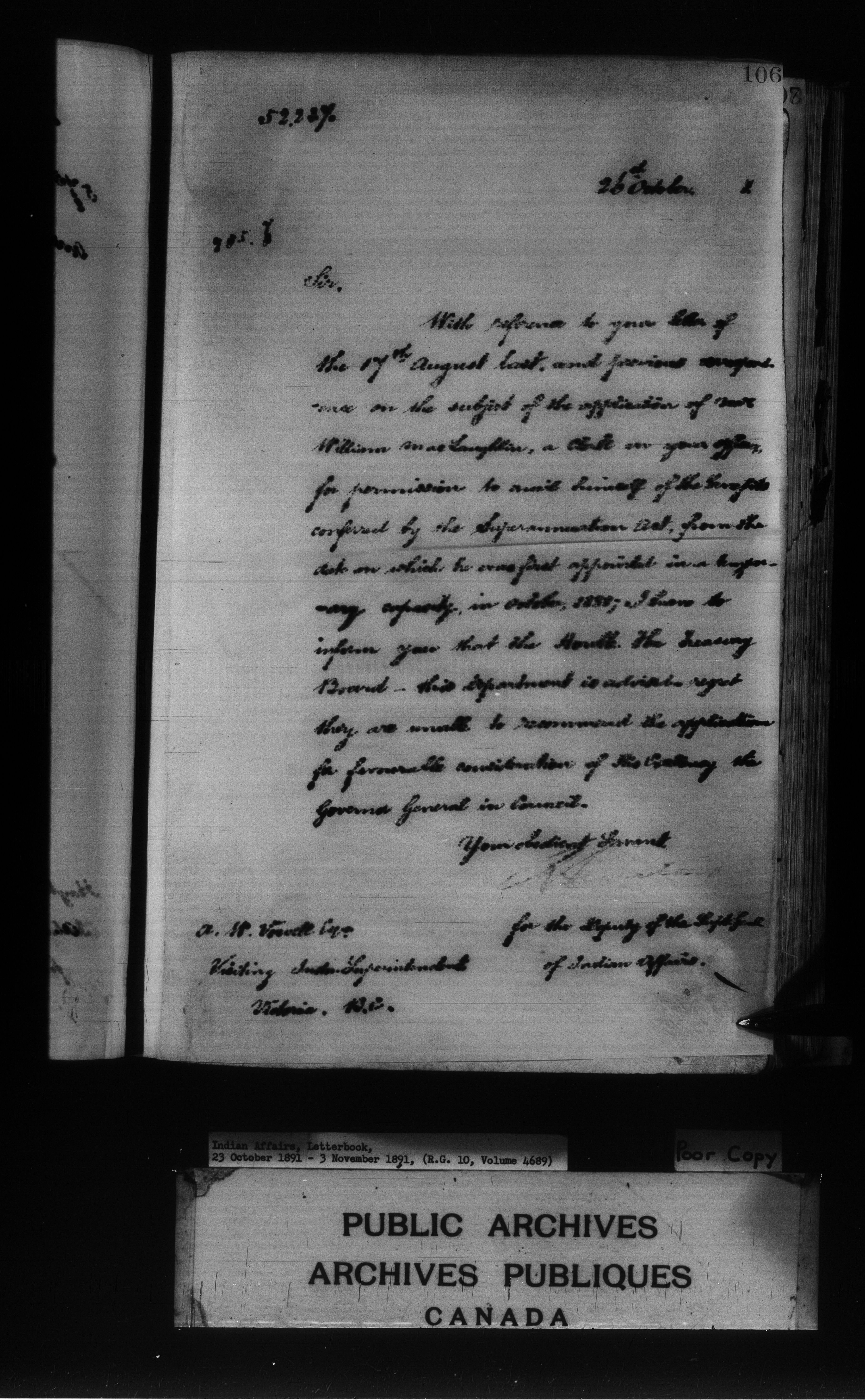 Department of Indian Affairs : Letterbooks of out-going correspondence relating to the administration of Indian Affairs in both eastern and western Canada, 1871-1920 - 7969