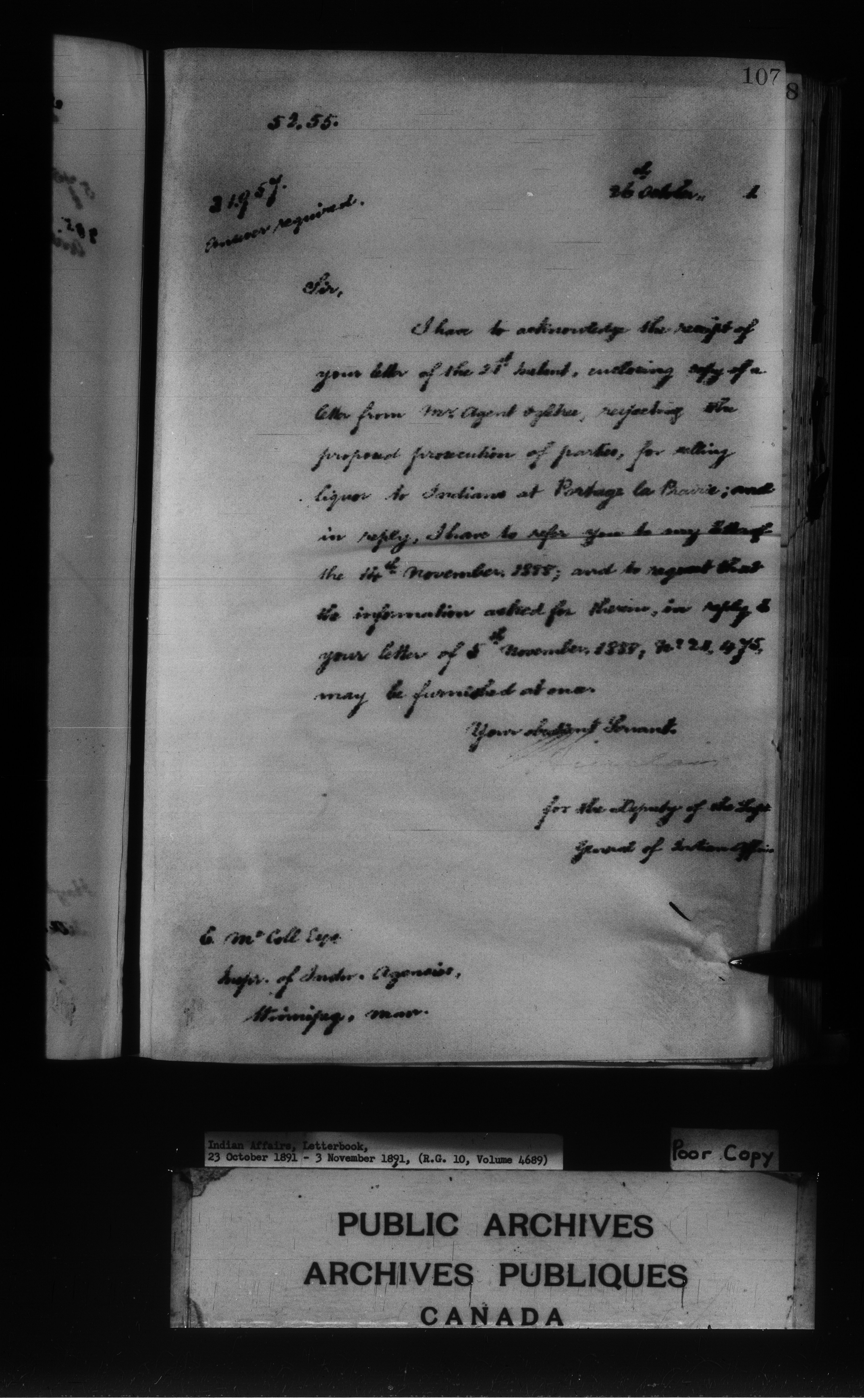 Department of Indian Affairs : Letterbooks of out-going correspondence relating to the administration of Indian Affairs in both eastern and western Canada, 1871-1920 - 7969
