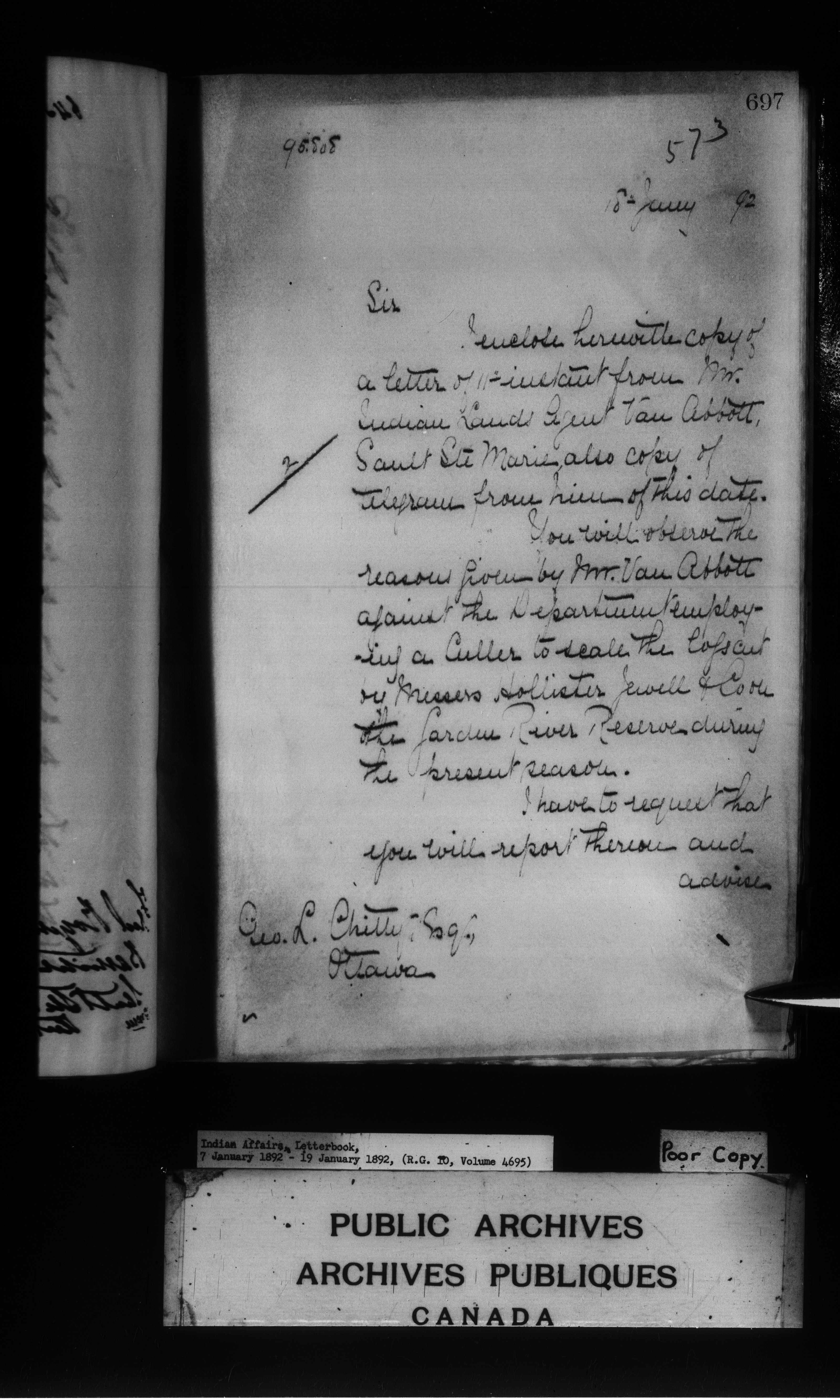 Department of Indian Affairs : Letterbooks of out-going correspondence relating to the administration of Indian Affairs in both eastern and western Canada, 1871-1920 - 7973