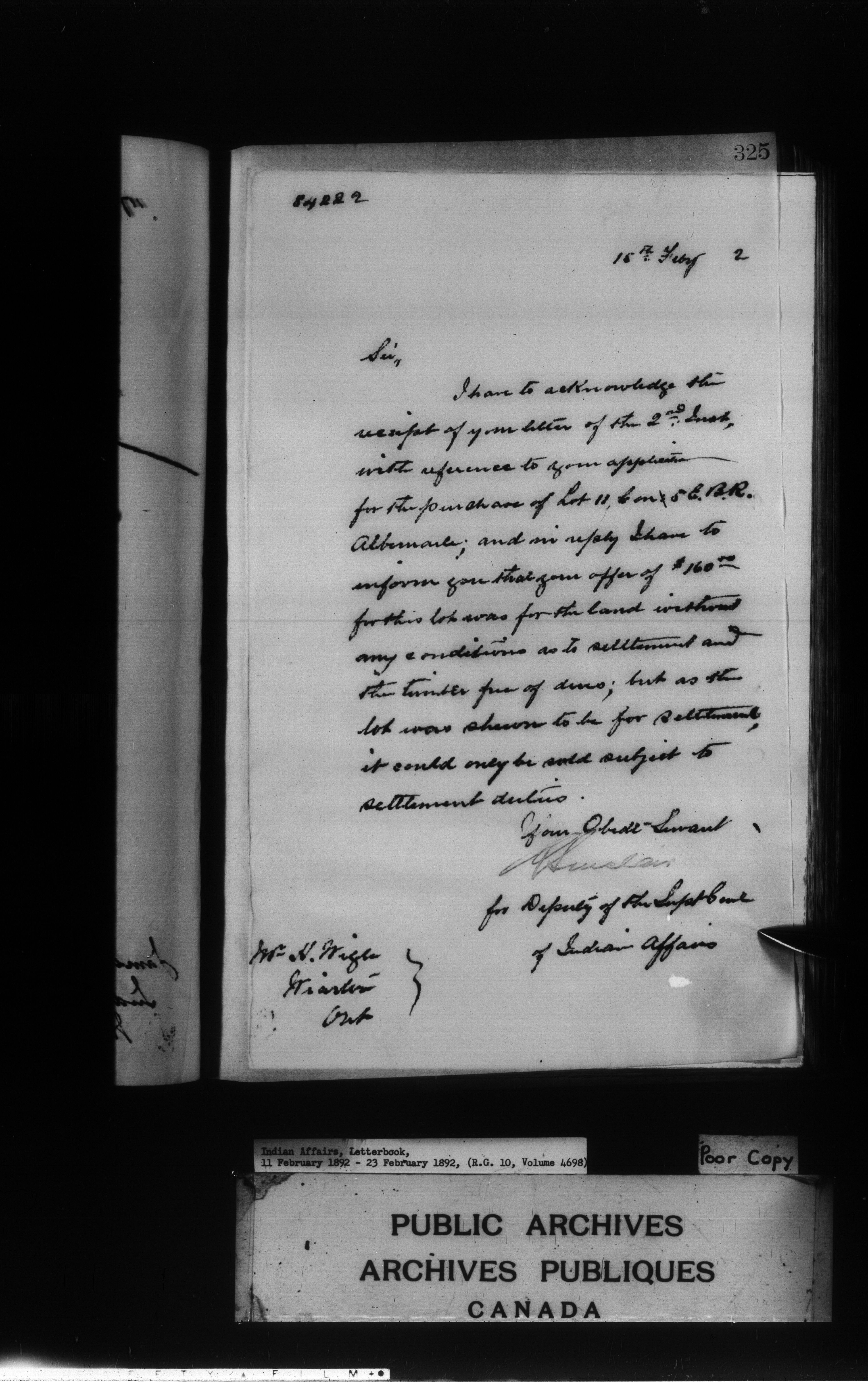 Department of Indian Affairs : Letterbooks of out-going correspondence relating to the administration of Indian Affairs in both eastern and western Canada, 1871-1920 - 7975