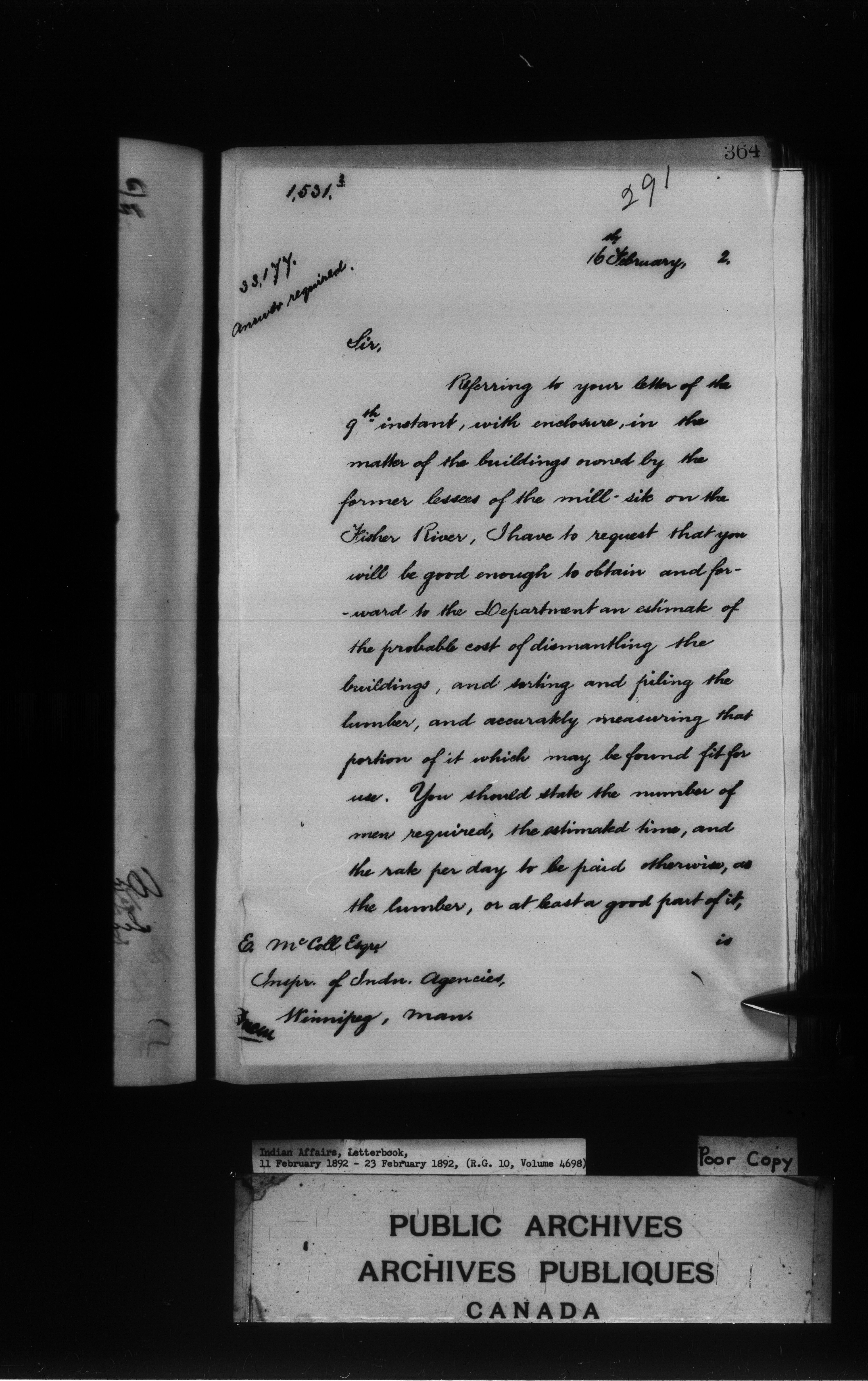 Department of Indian Affairs : Letterbooks of out-going correspondence relating to the administration of Indian Affairs in both eastern and western Canada, 1871-1920 - 7975