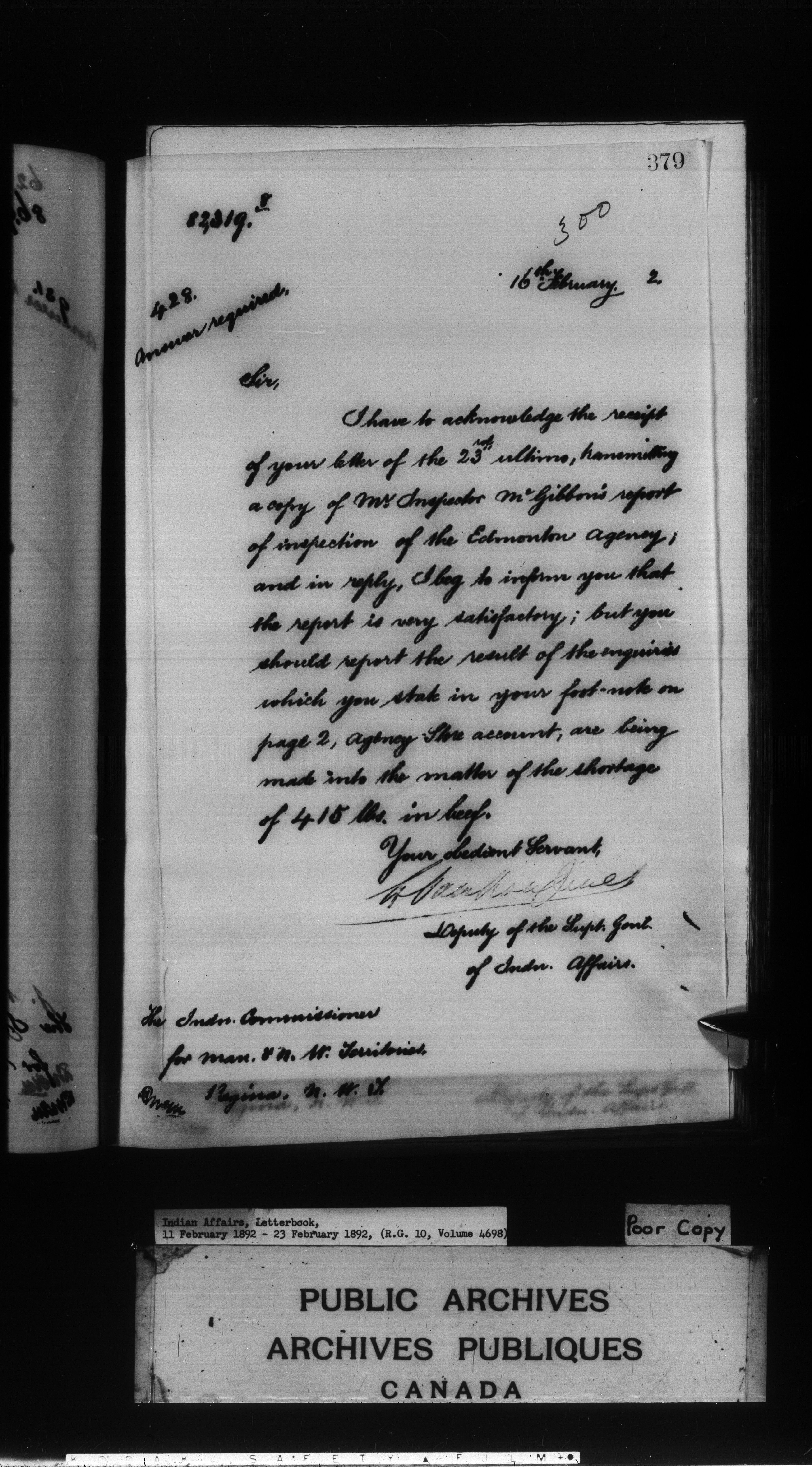 Department of Indian Affairs : Letterbooks of out-going correspondence relating to the administration of Indian Affairs in both eastern and western Canada, 1871-1920 - 7975