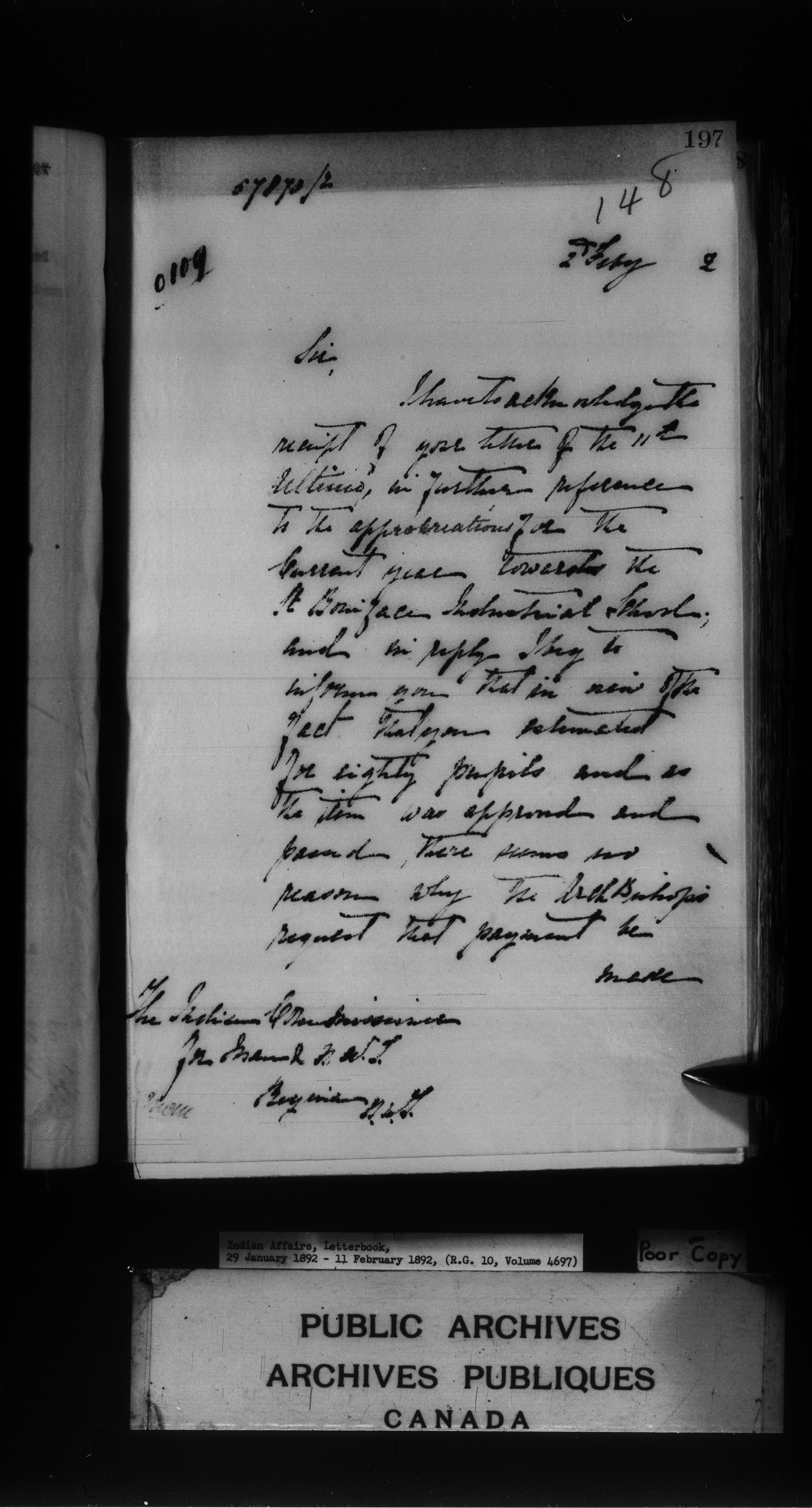 Department of Indian Affairs : Letterbooks of out-going correspondence relating to the administration of Indian Affairs in both eastern and western Canada, 1871-1920 - 7975