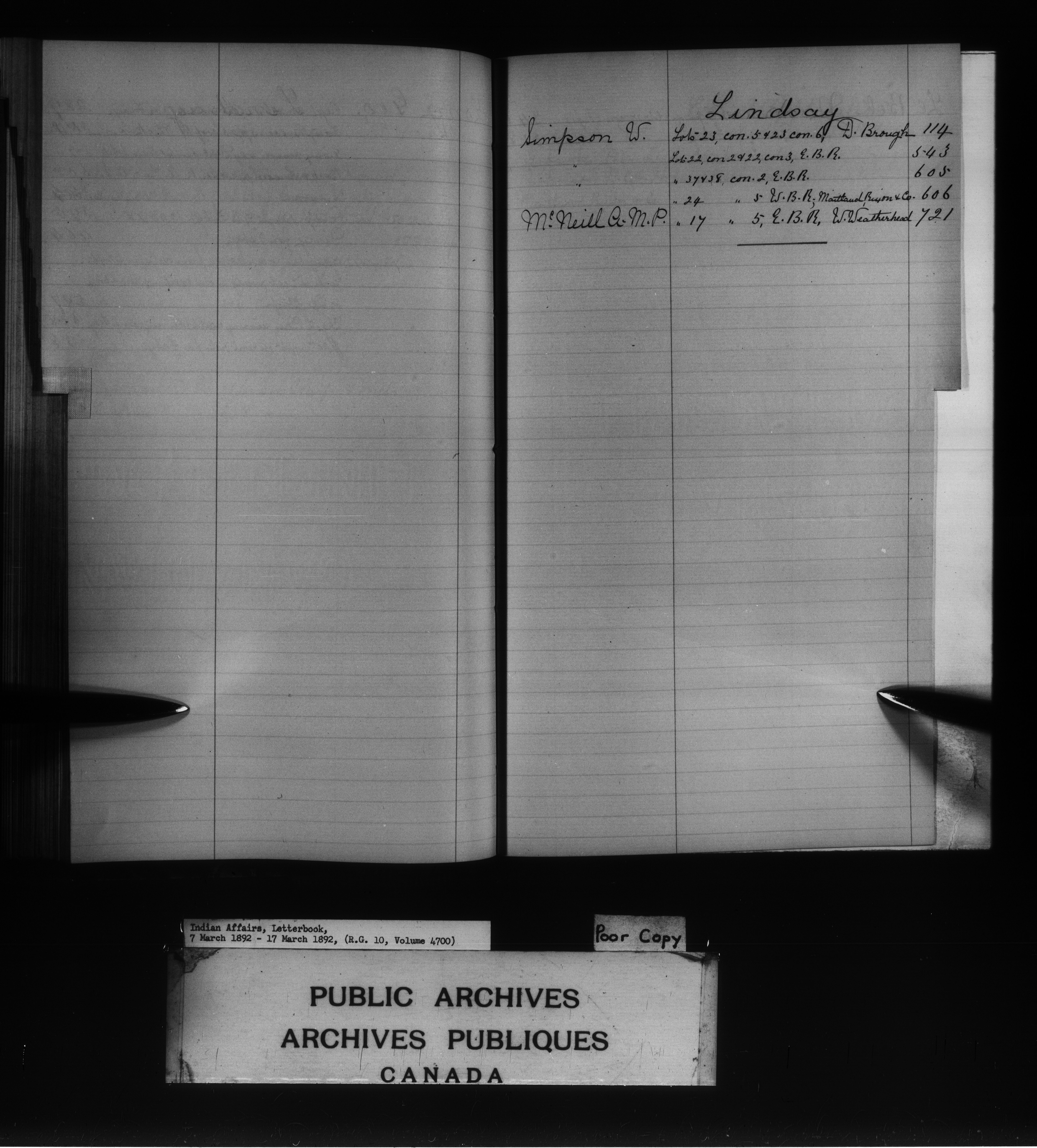 Department of Indian Affairs : Letterbooks of out-going correspondence relating to the administration of Indian Affairs in both eastern and western Canada, 1871-1920 - 7977