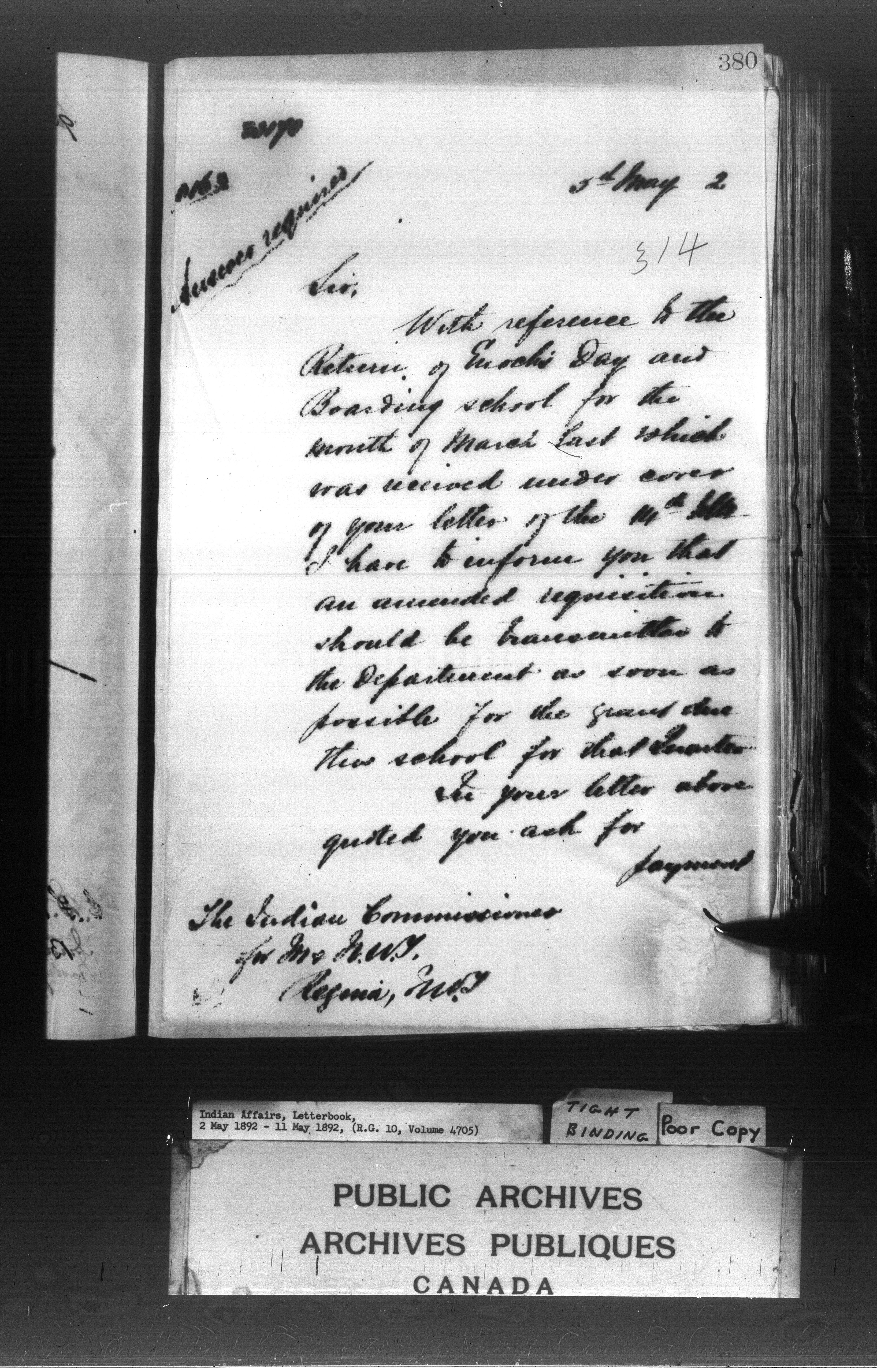 Department of Indian Affairs : Letterbooks of out-going correspondence relating to the administration of Indian Affairs in both eastern and western Canada, 1871-1920 - 7980