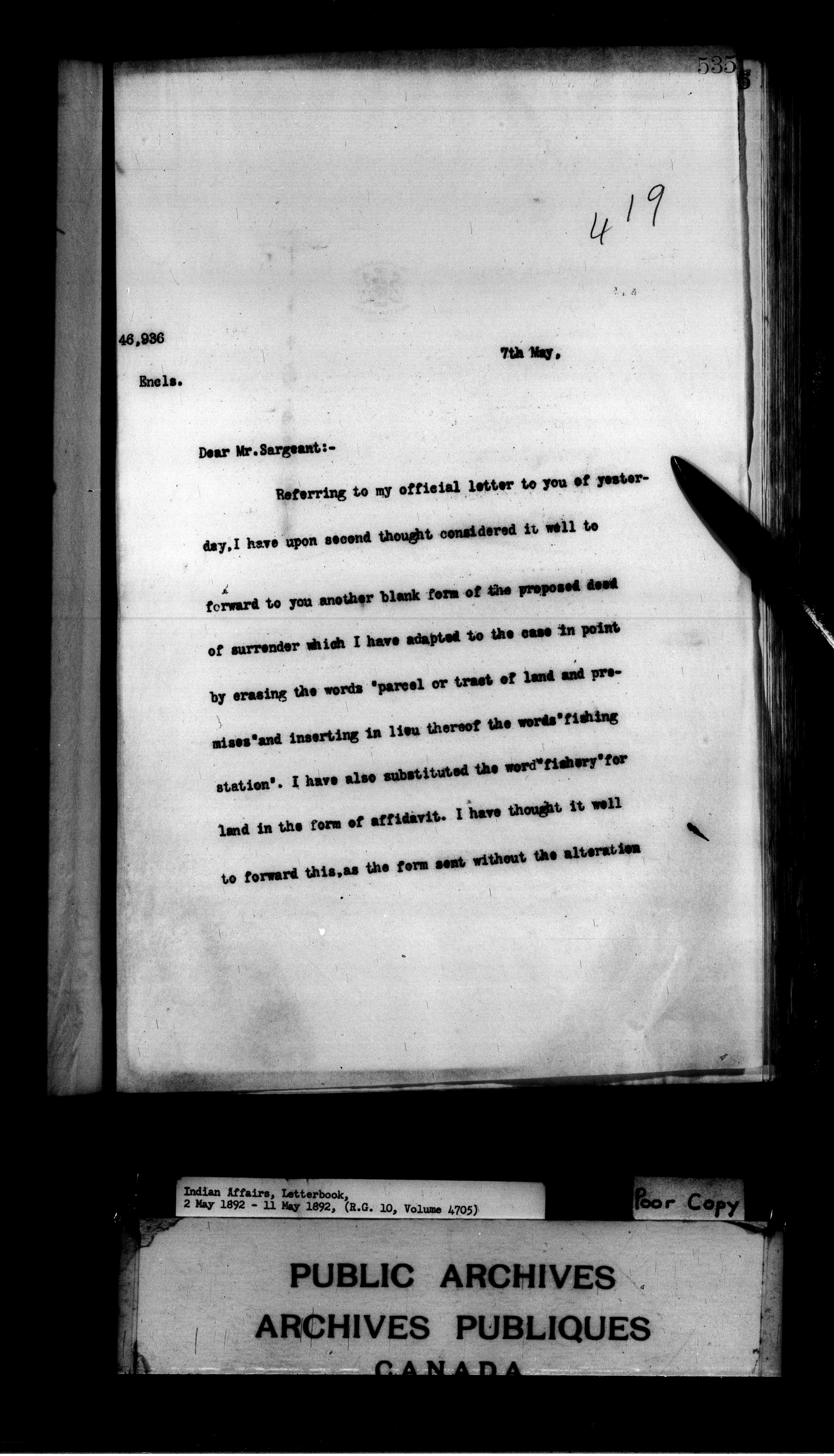 Department of Indian Affairs : Departmental letterbooks : C-7981