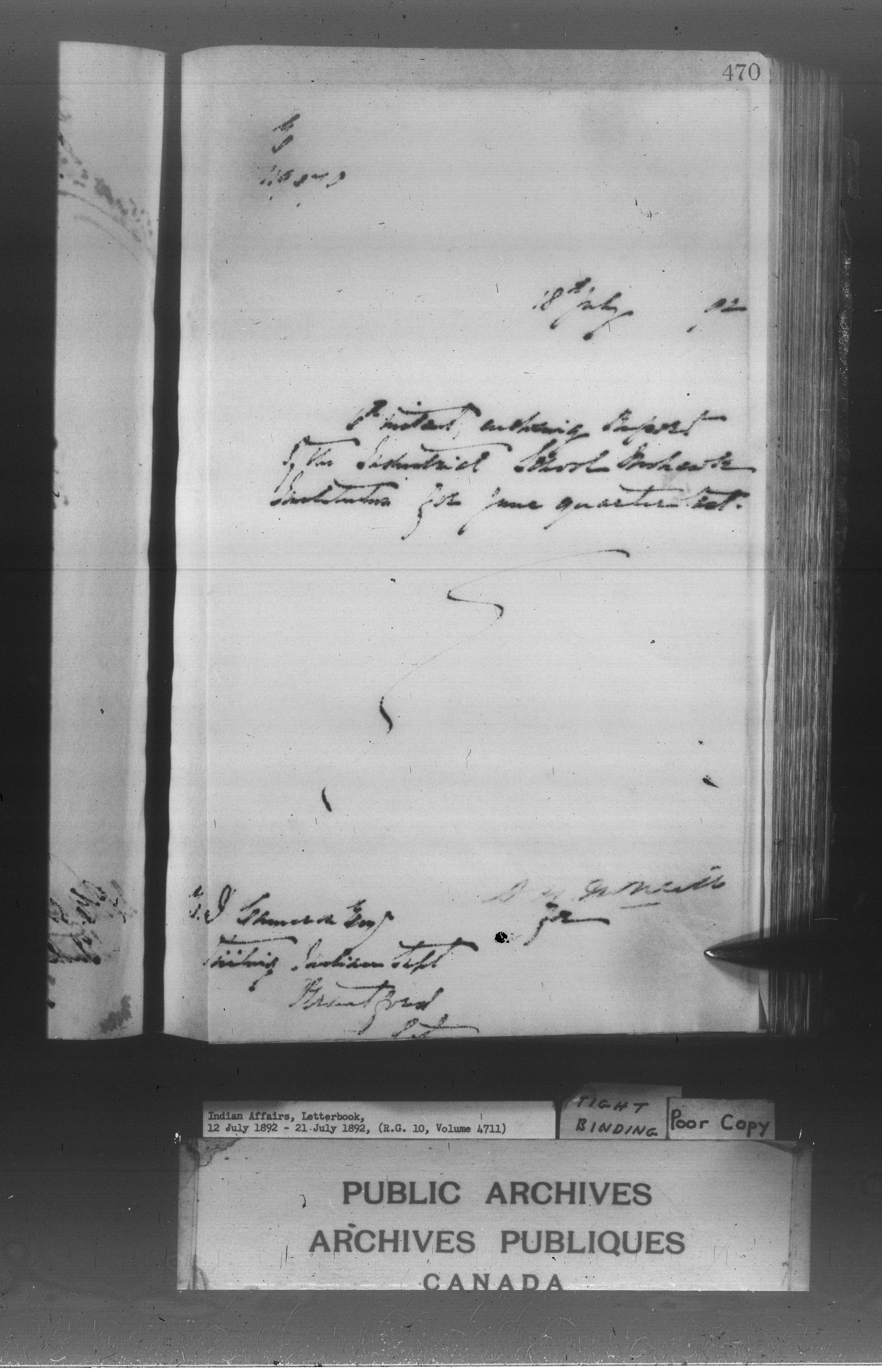Department of Indian Affairs : Letterbooks of out-going correspondence relating to the administration of Indian Affairs in both eastern and western Canada, 1871-1920 - 7986