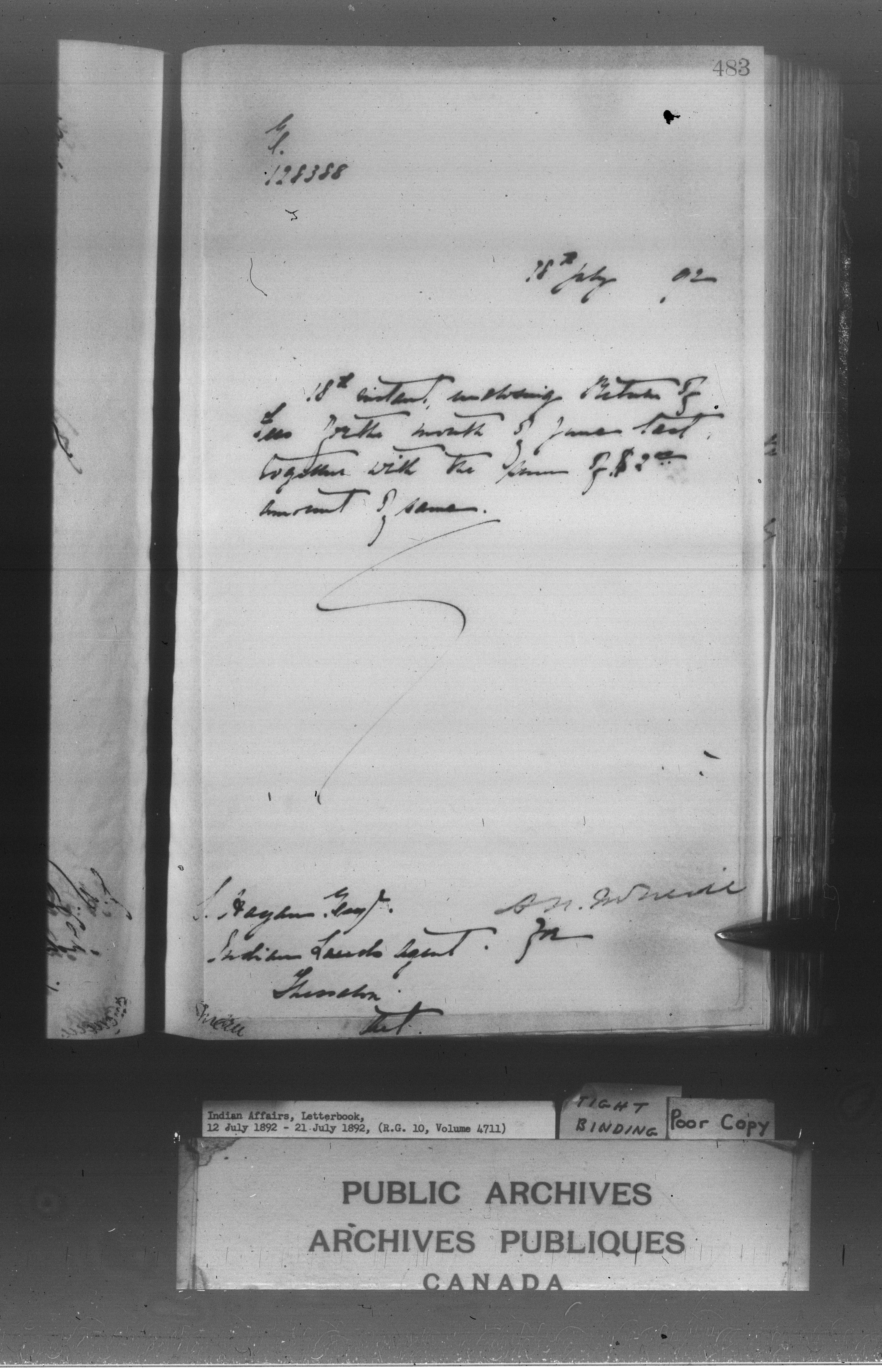Department of Indian Affairs : Letterbooks of out-going correspondence relating to the administration of Indian Affairs in both eastern and western Canada, 1871-1920 - 7986