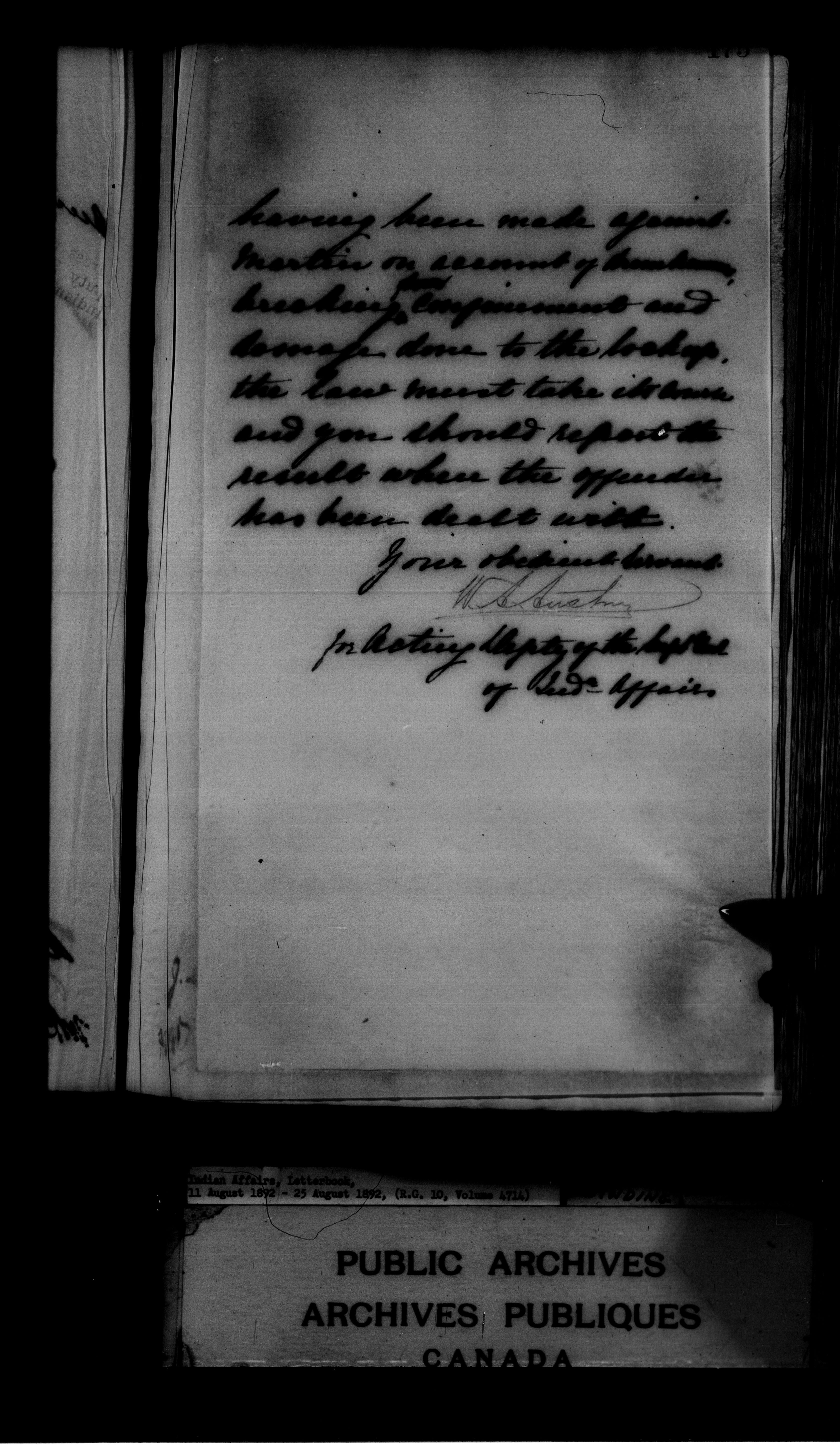 Department of Indian Affairs : Letterbooks of out-going correspondence relating to the administration of Indian Affairs in both eastern and western Canada, 1871-1920 - 7987