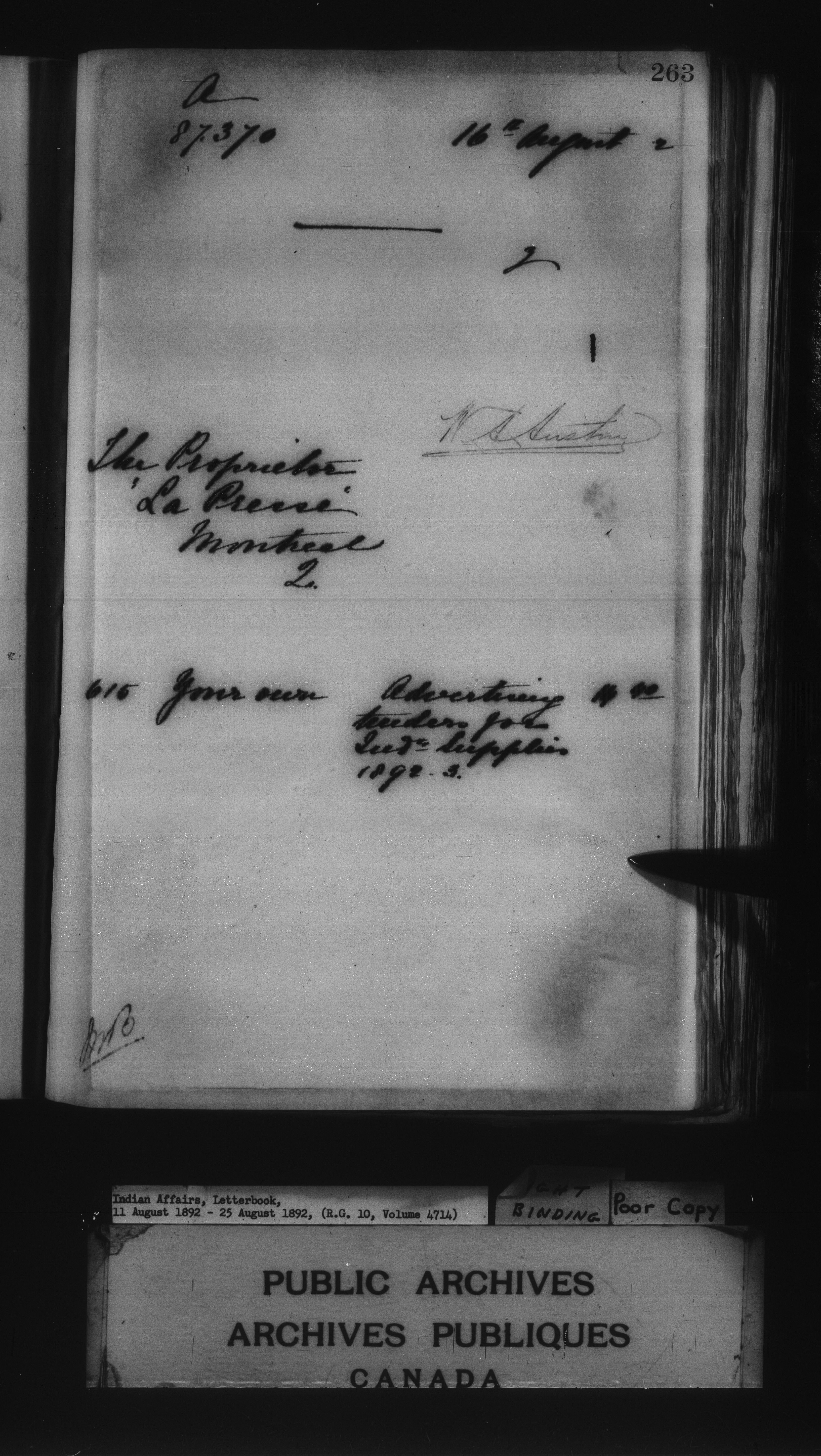 Department of Indian Affairs : Letterbooks of out-going correspondence relating to the administration of Indian Affairs in both eastern and western Canada, 1871-1920 - 7988
