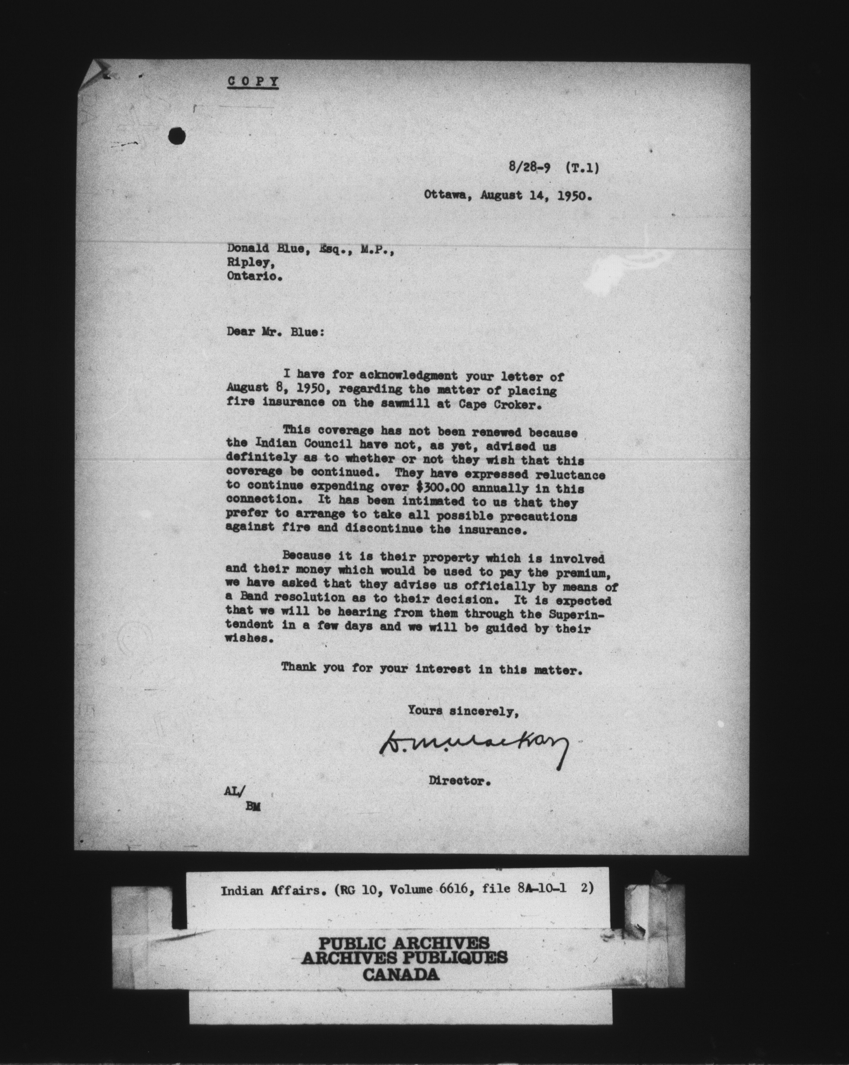 Department of Indian Affairs : land sales series - 8019