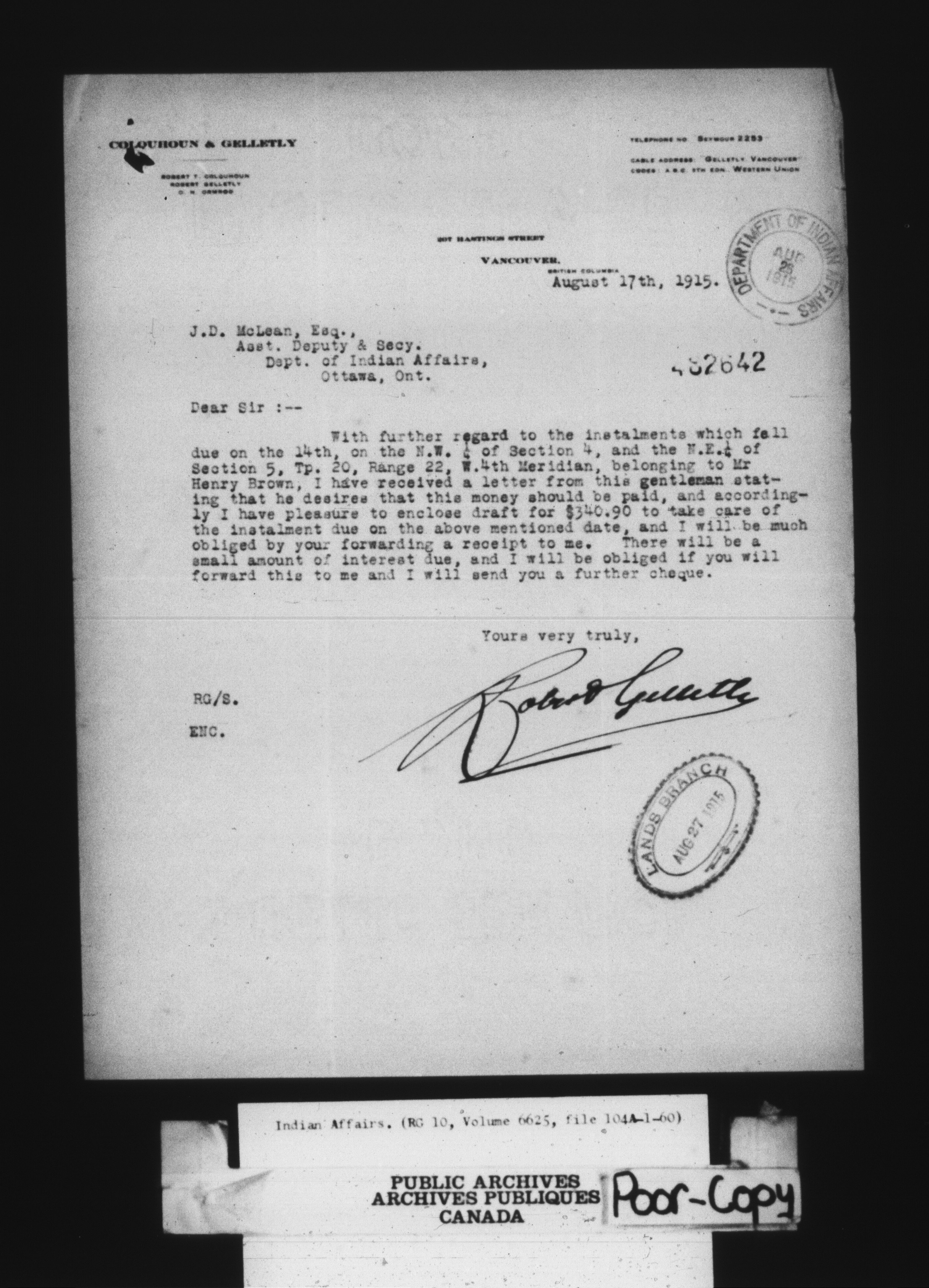 Department of Indian Affairs : land sales series : C-8024