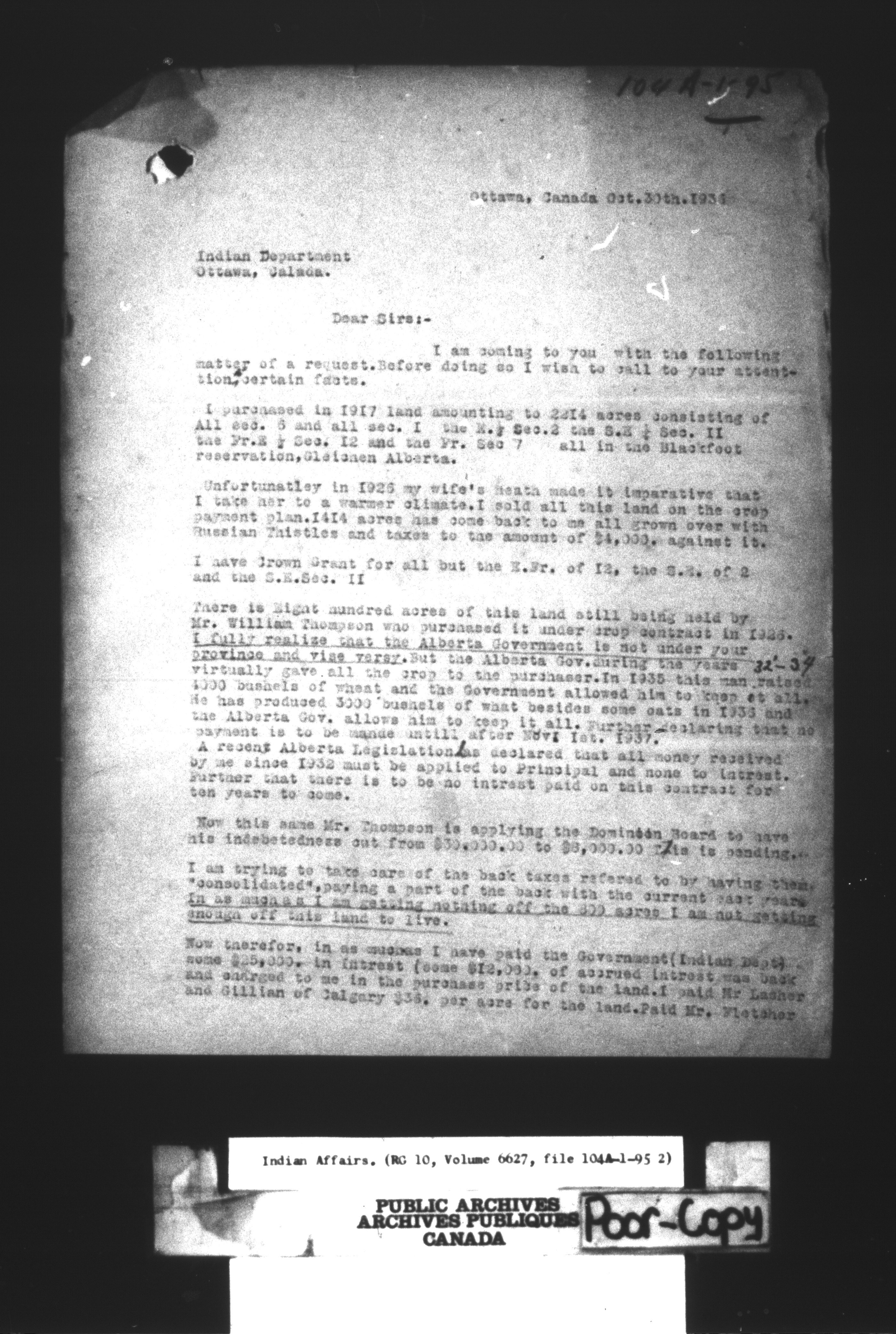 Department of Indian Affairs : land sales series : C-8026