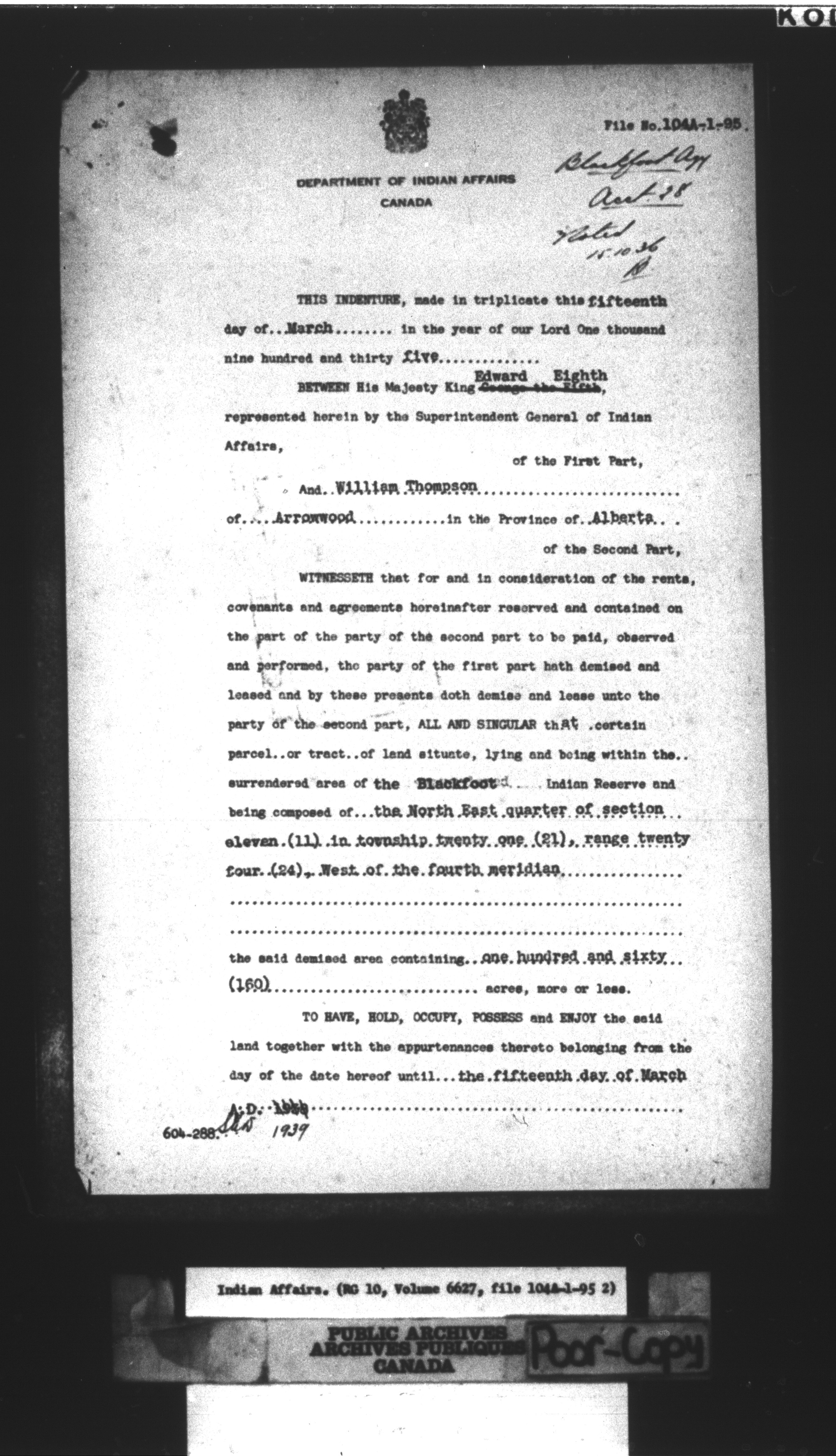 Department of Indian Affairs : land sales series : C-8026