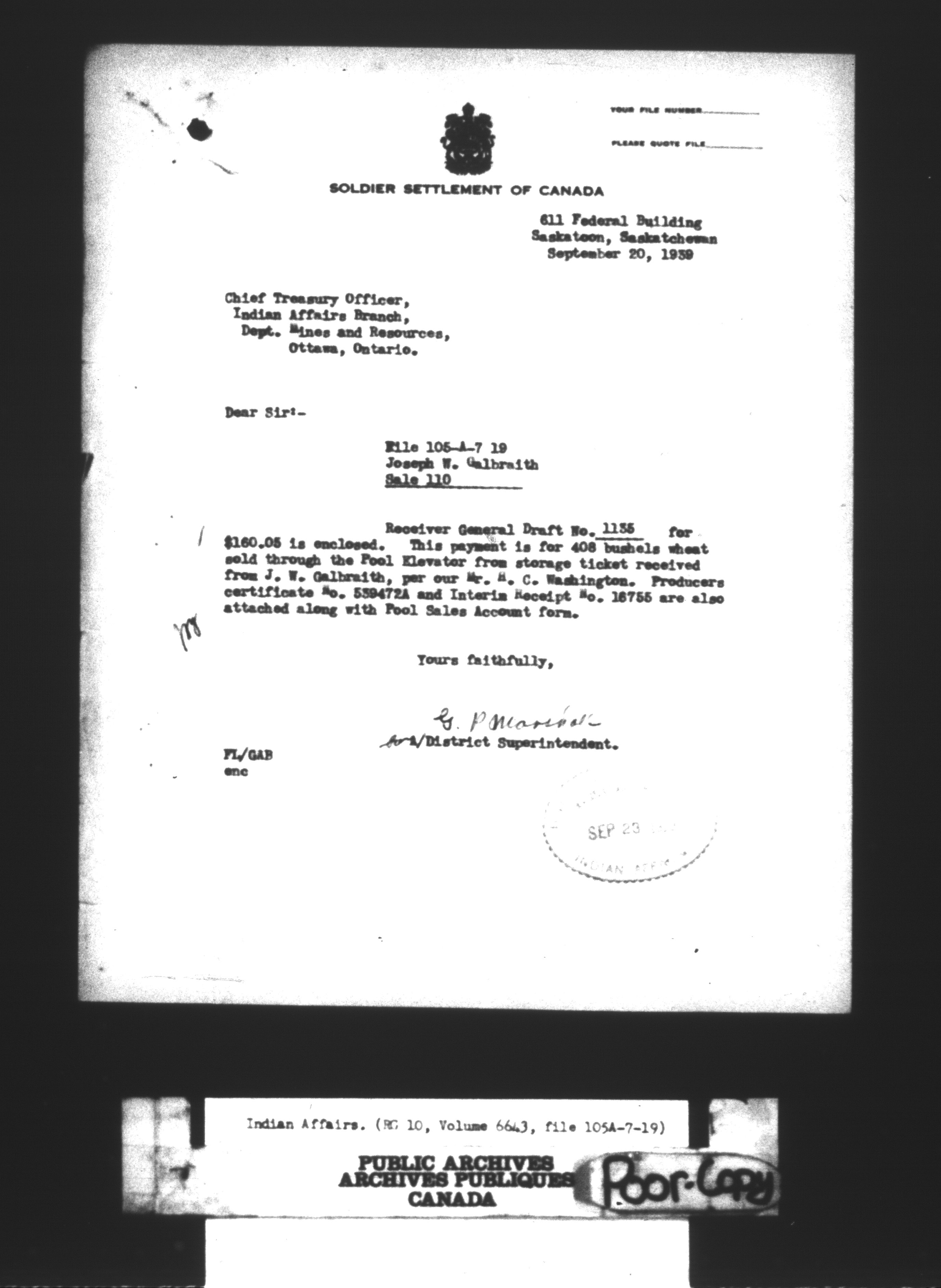 Department of Indian Affairs : land sales series : C-8038