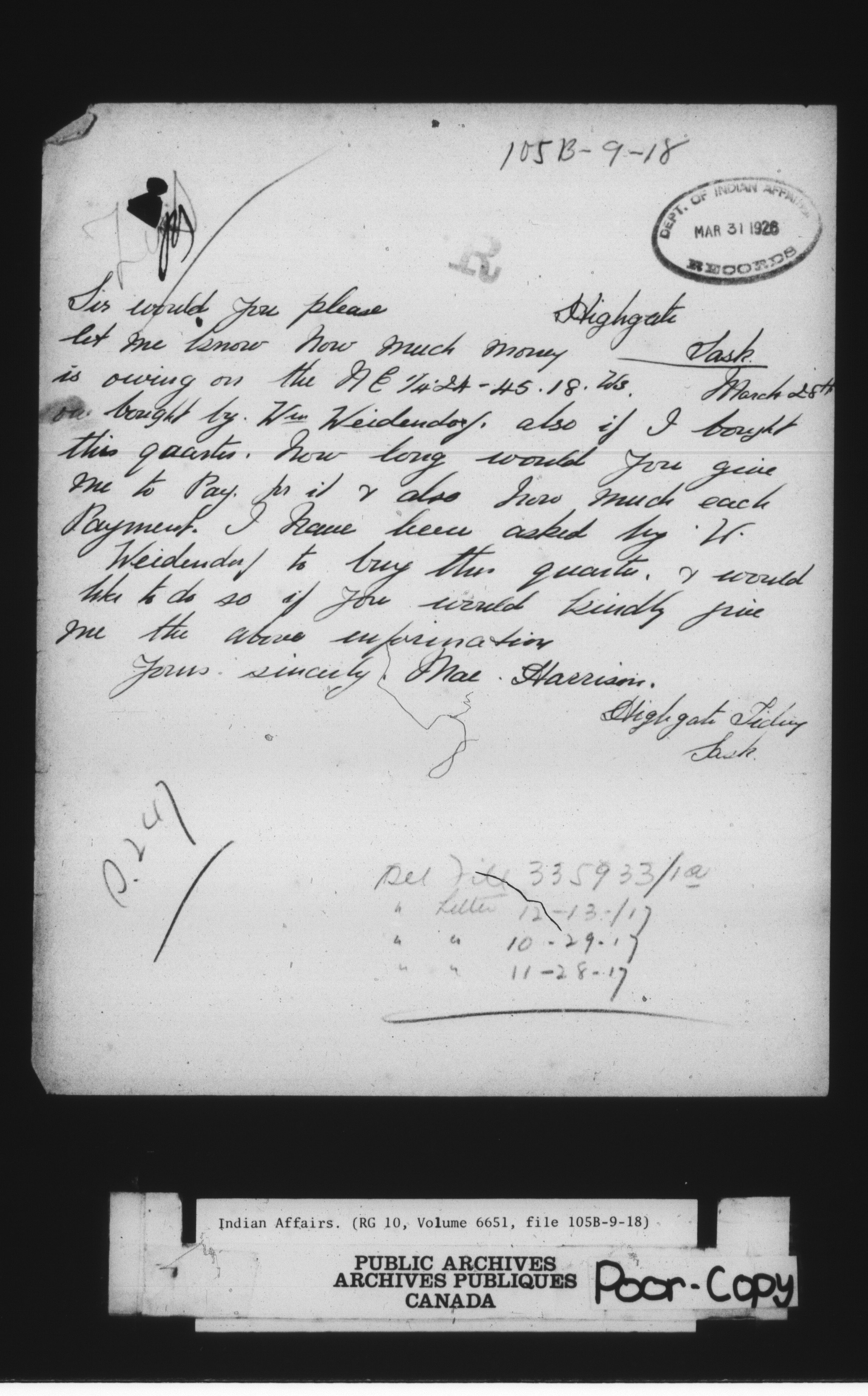 Department of Indian Affairs : land sales series : C-8043