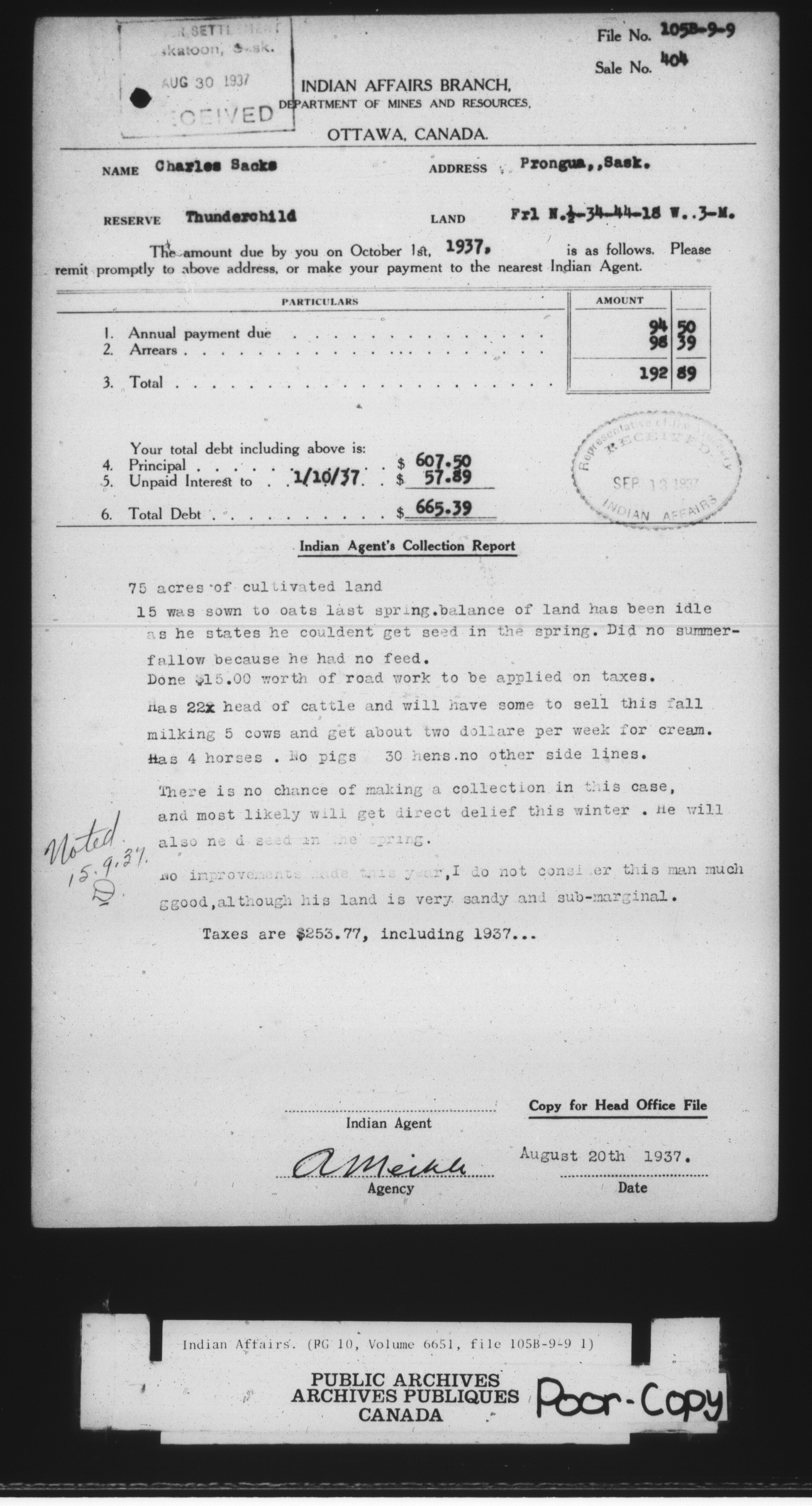 Department of Indian Affairs : land sales series : C-8043