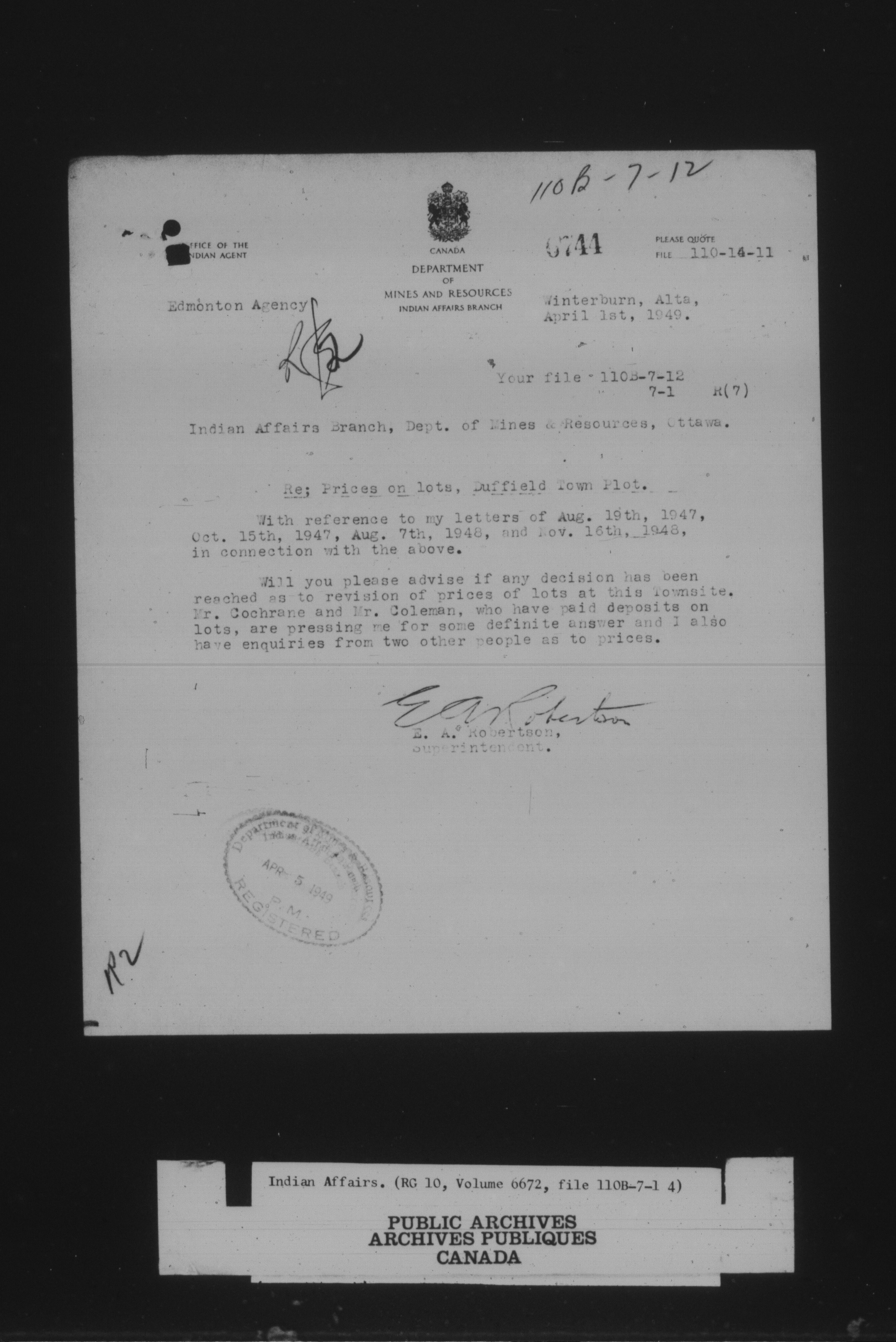 Department of Indian Affairs : land sales series : C-8055