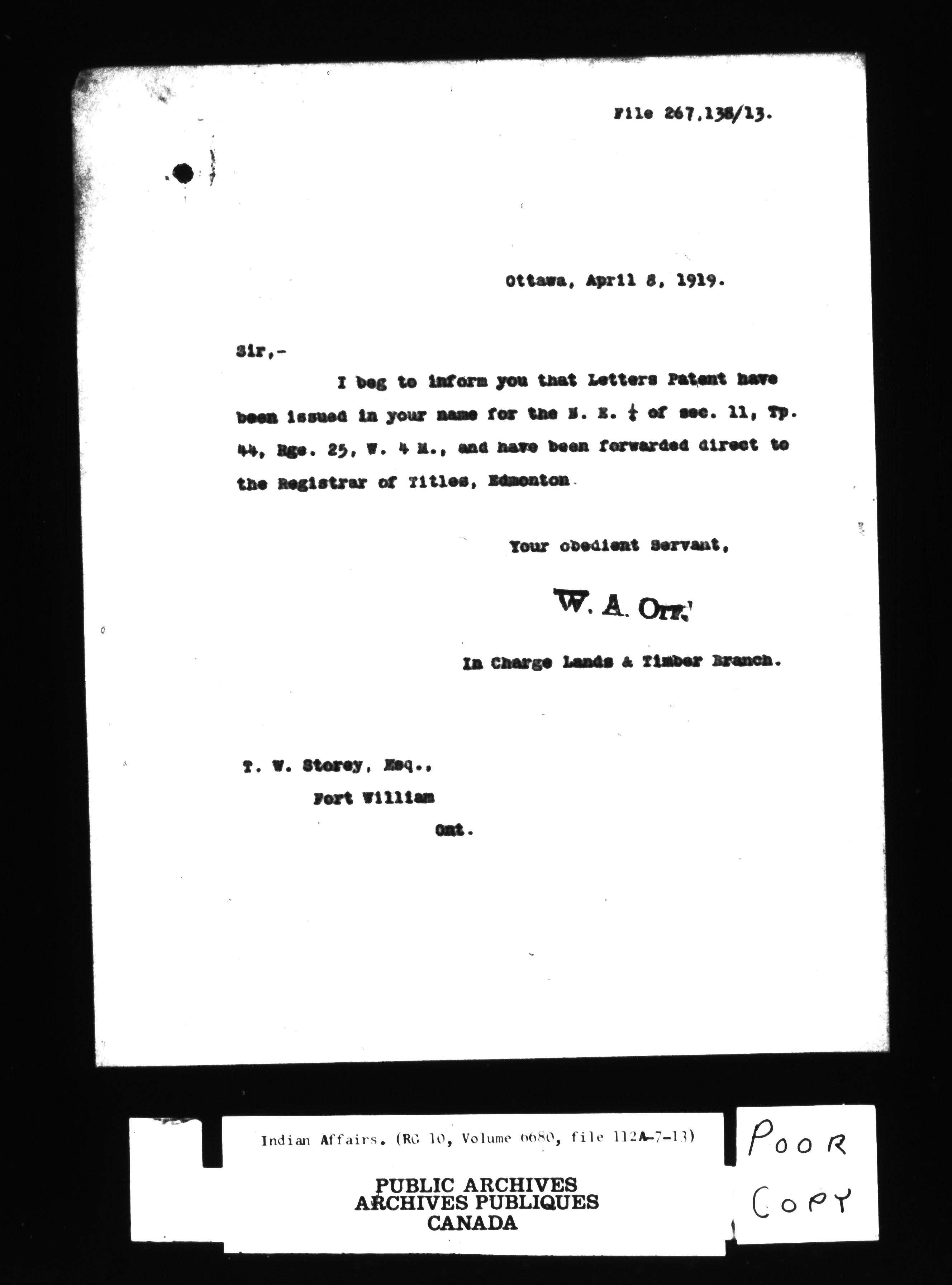 Department of Indian Affairs : land sales series : C-8061
