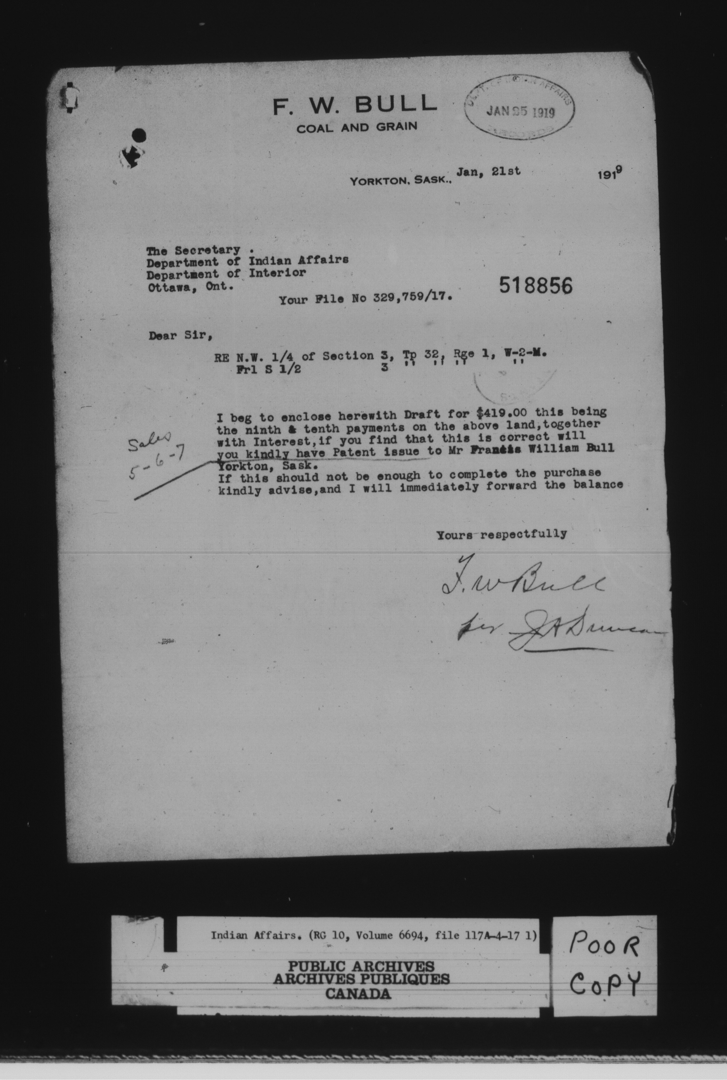 Department of Indian Affairs : land sales series - 8069
