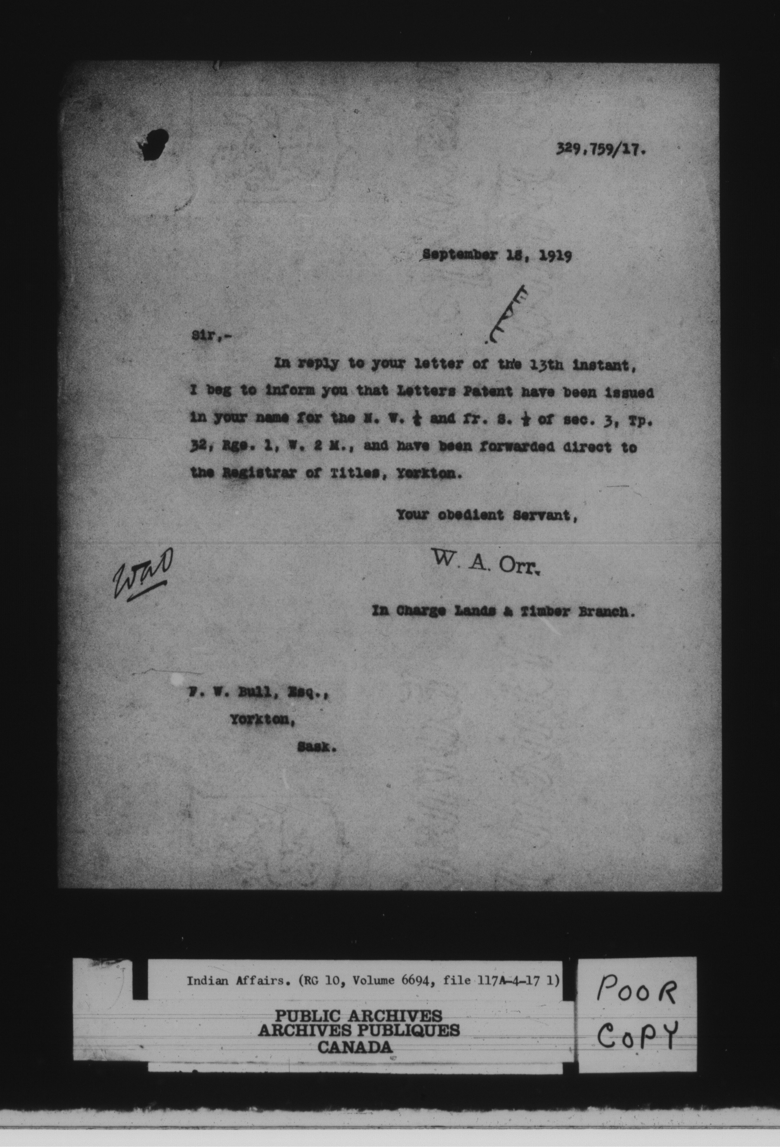 Department of Indian Affairs : land sales series - 8069