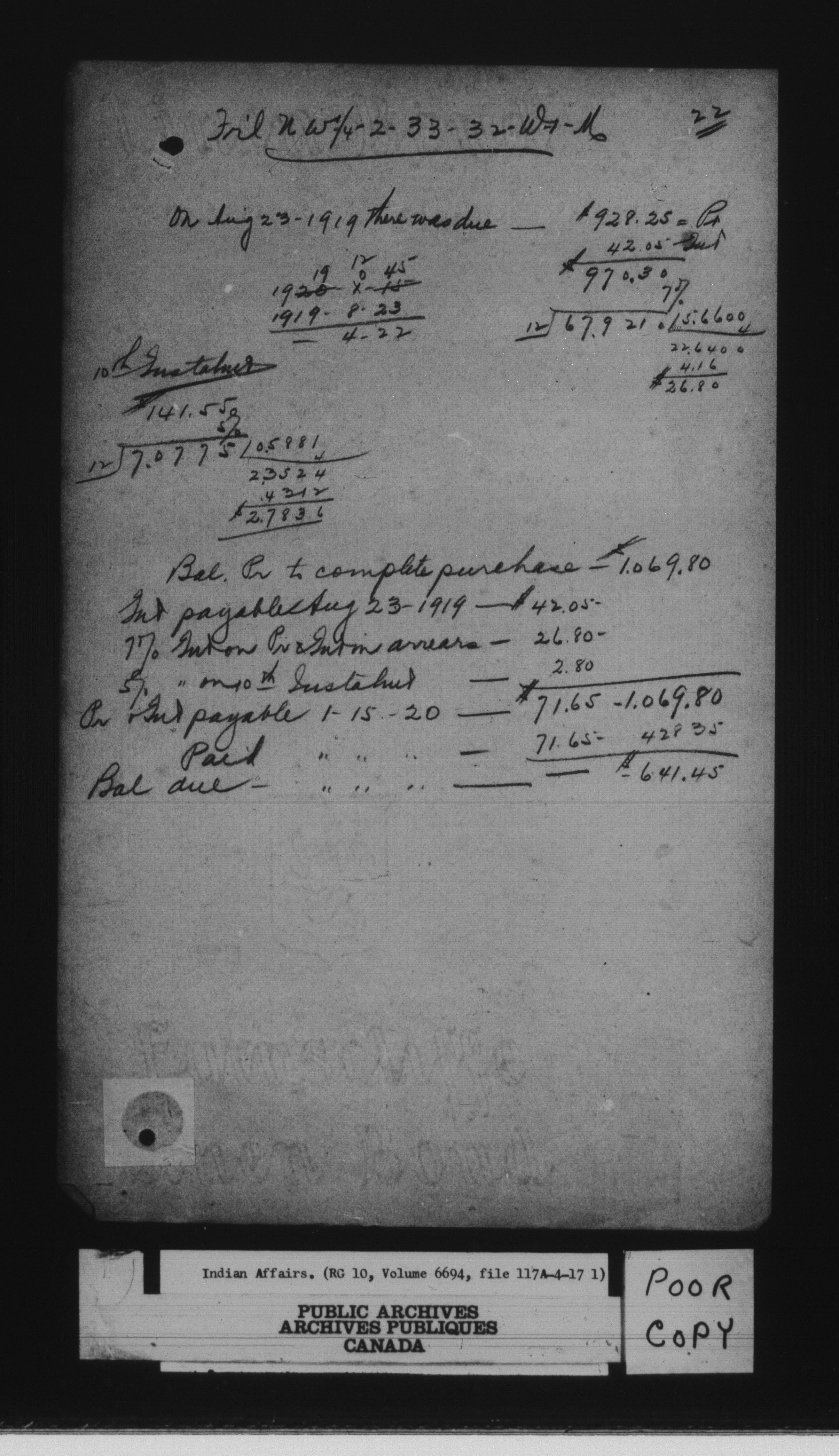 Department of Indian Affairs : land sales series - 8069