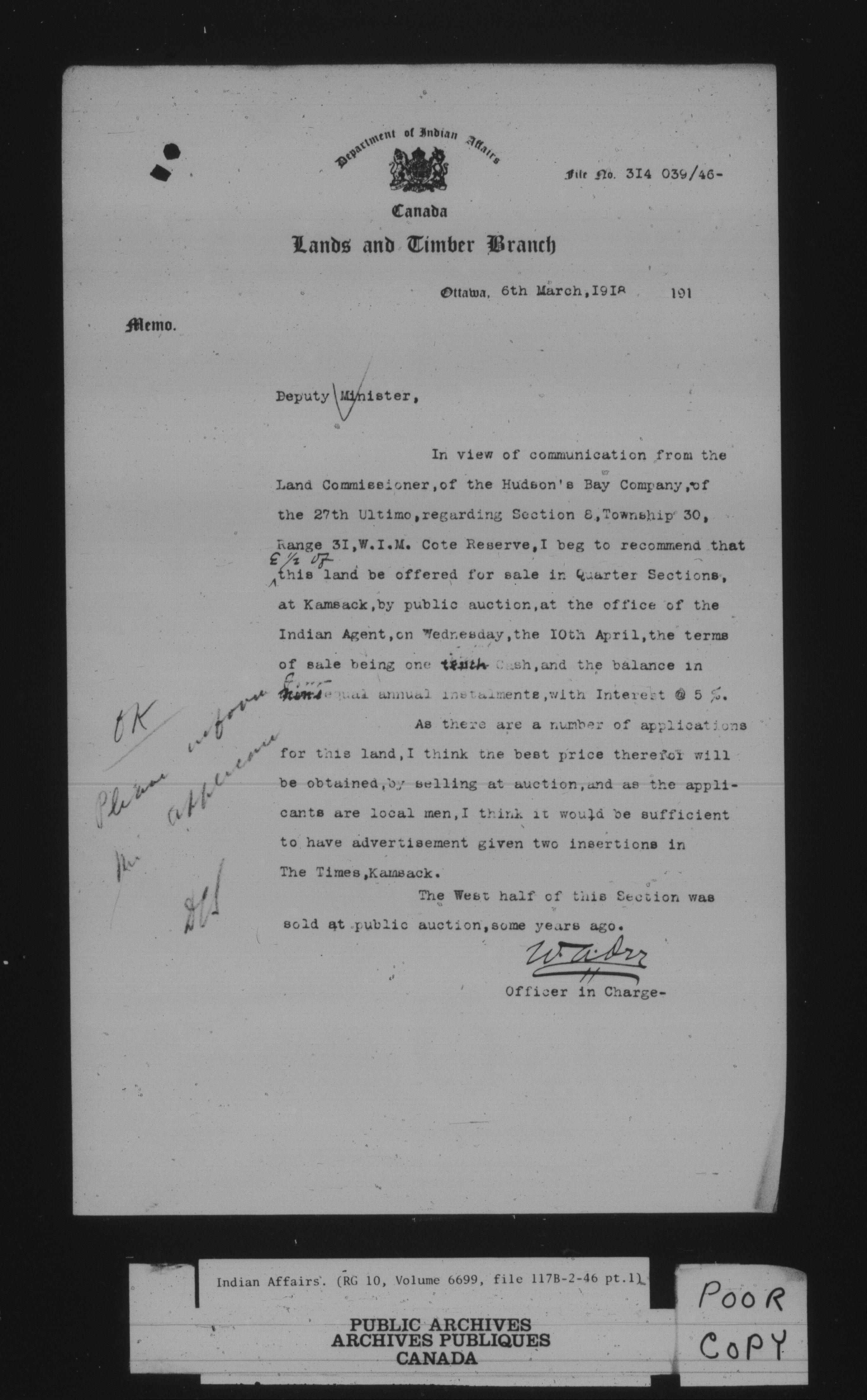 Department of Indian Affairs : land sales series : C-8071
