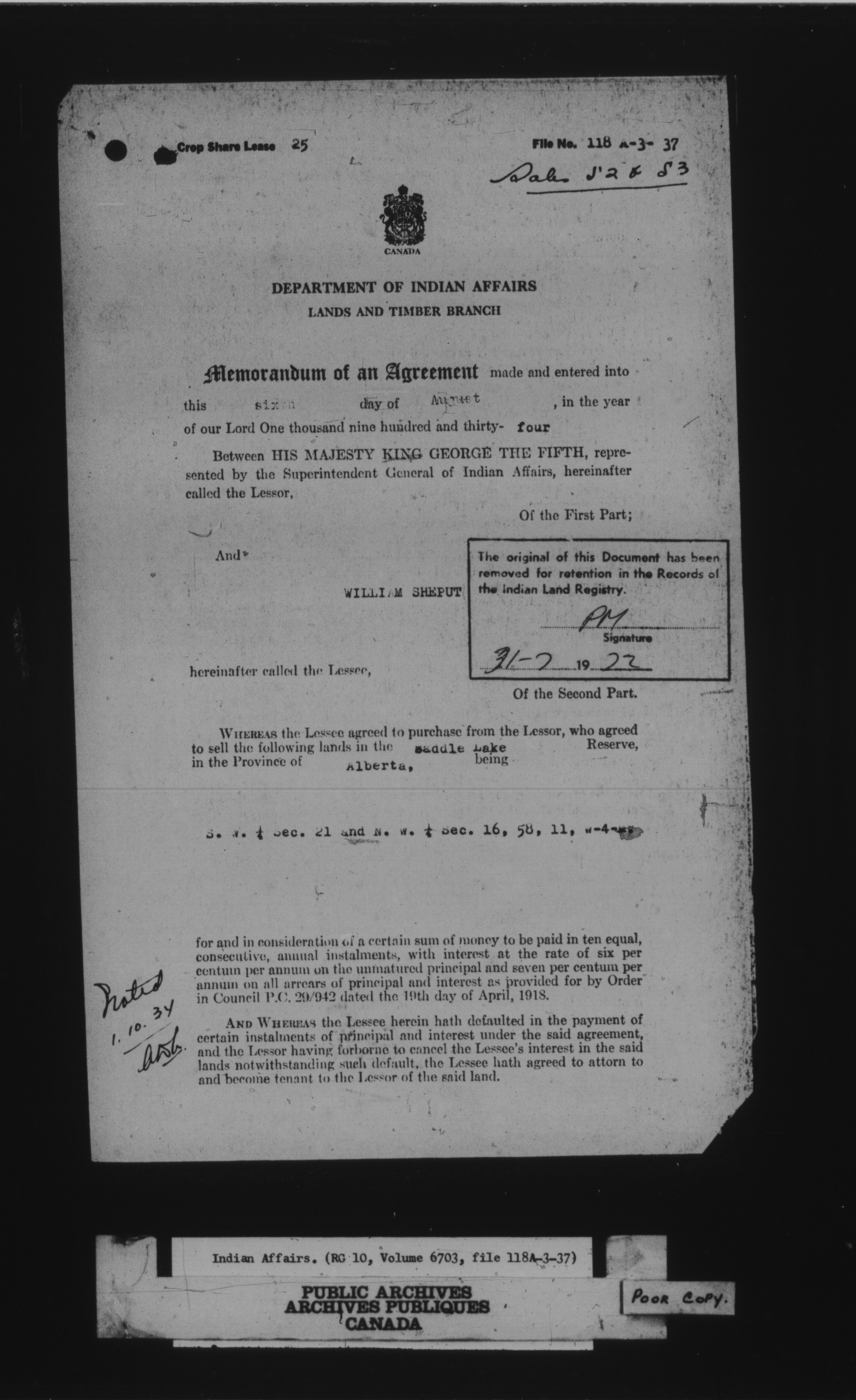 Department of Indian Affairs : land sales series - 8074