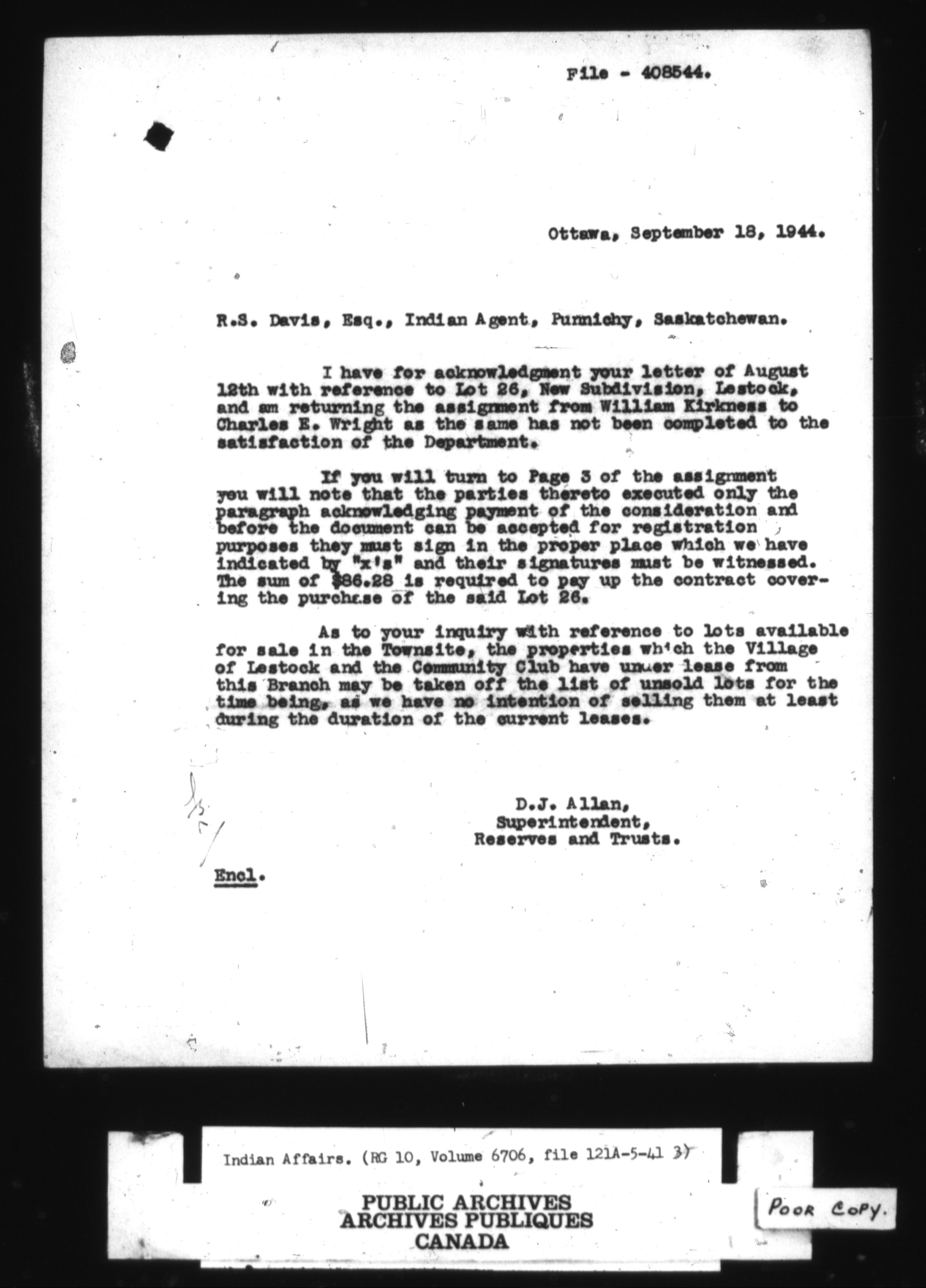Department of Indian Affairs : land sales series - 8077