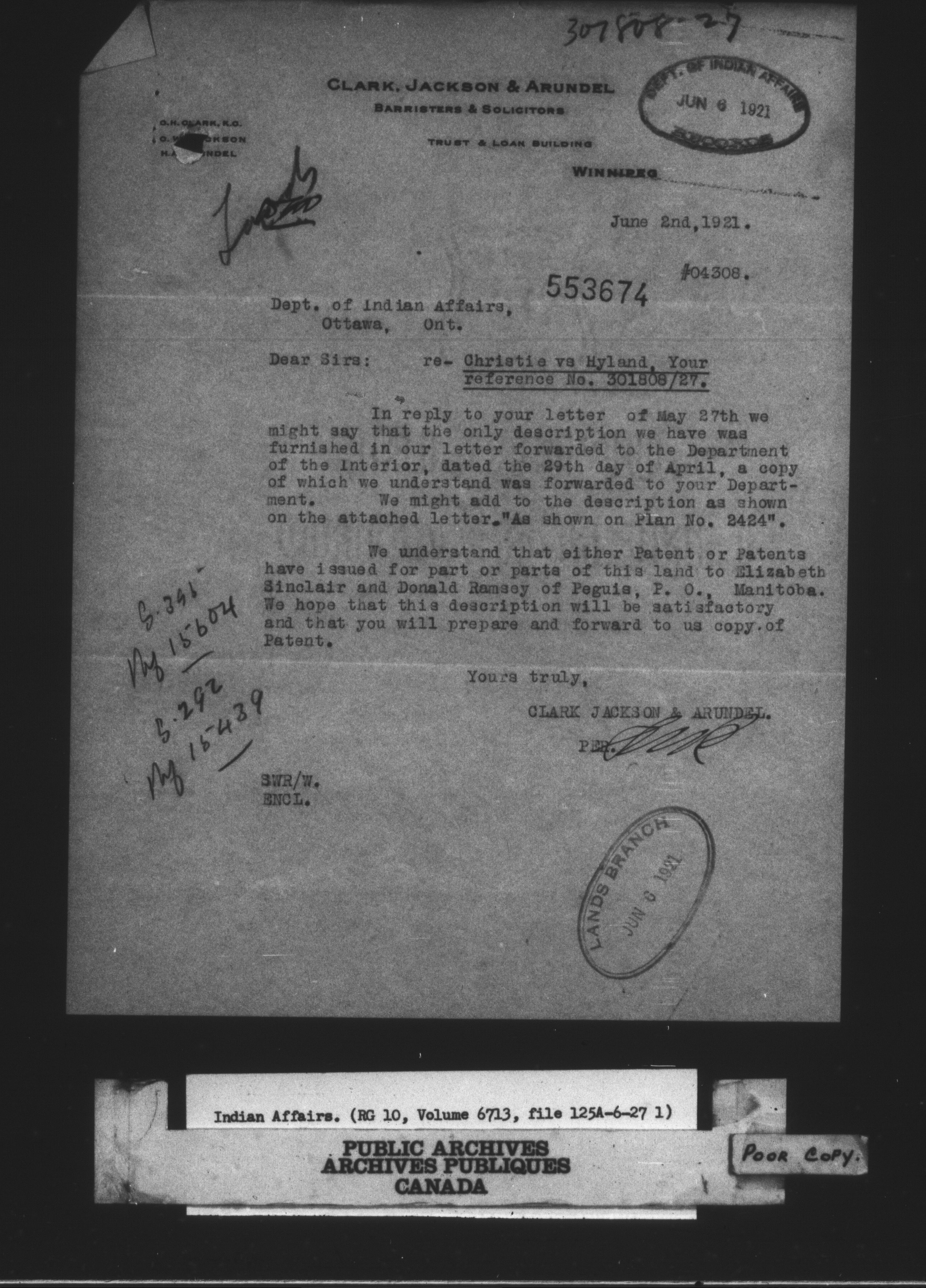 Department of Indian Affairs : land sales series : C-8080
