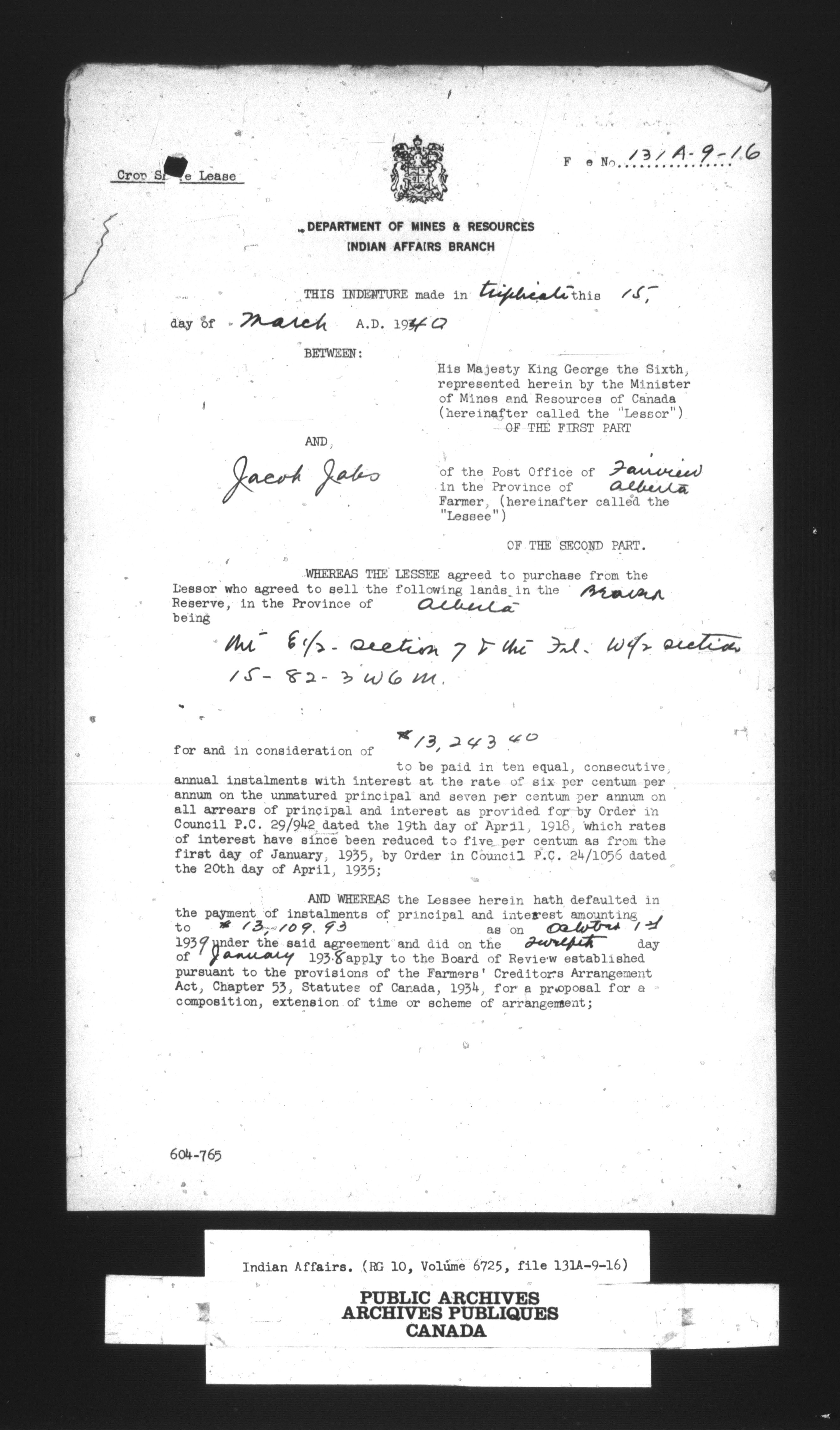 Department of Indian Affairs : land sales series - 8088